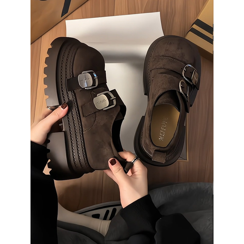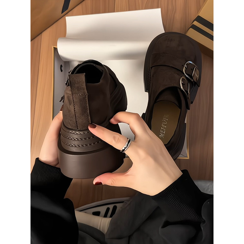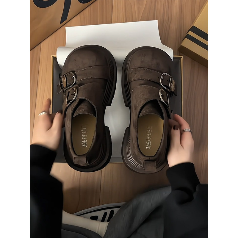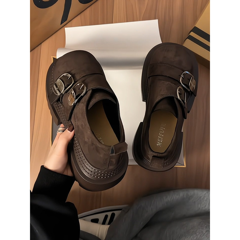复古英伦风松糕厚底大头小皮鞋女2025春秋新款百搭棕色jk增高单鞋