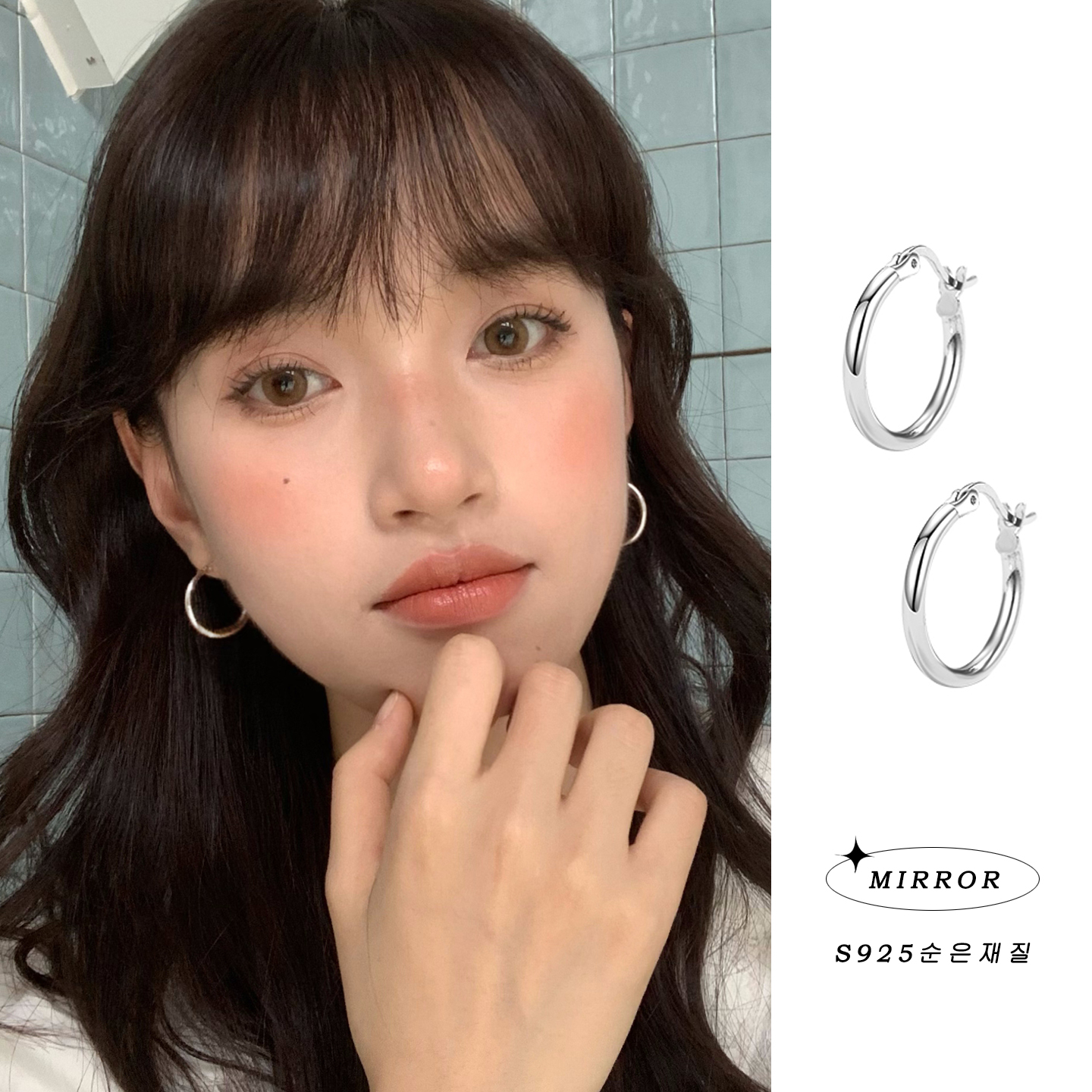 银色简约高级感素圈耳环女2025新款耳圈气质耳饰轻奢耳钉圈圈耳扣