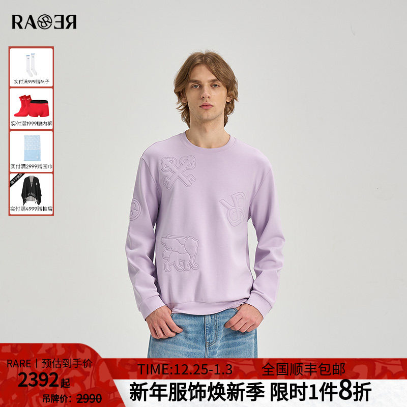 RARE威雅男装2025秋冬新款钥匙主题圆领上衣软糯空气棉紫色卫衣男
