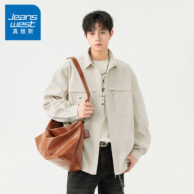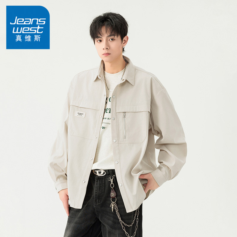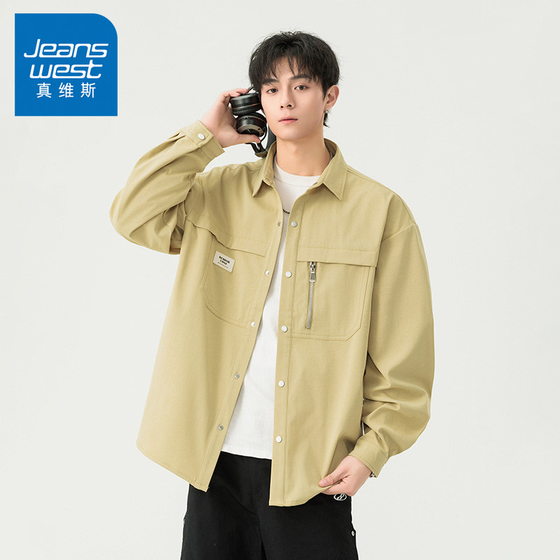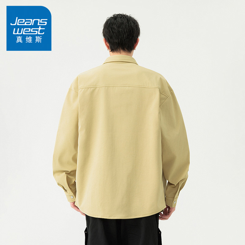 N5真维斯男士长袖衬衫2025秋季新款美式潮流宽松工装男生休闲衬衣