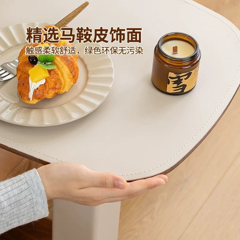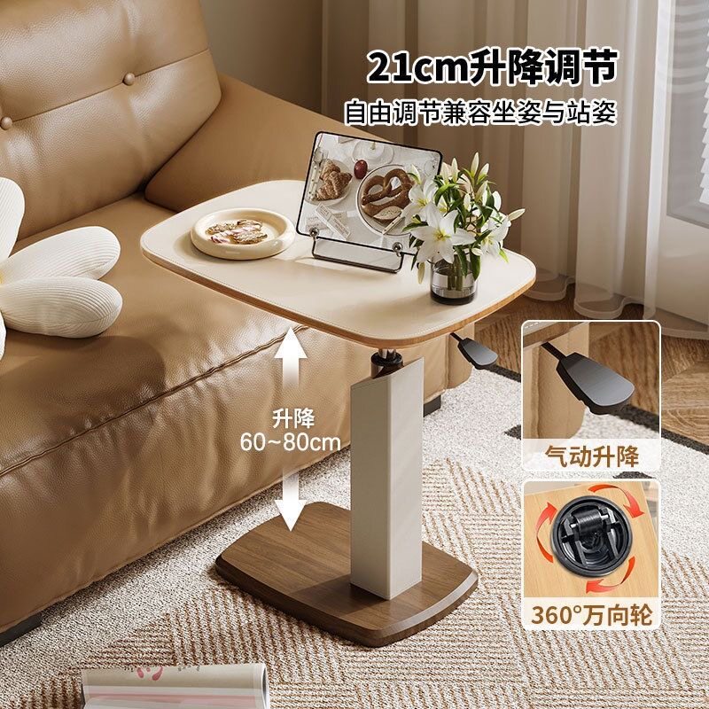 马鞍皮升降边几家用床边桌中古风客厅茶几小桌子可移动床头电脑桌