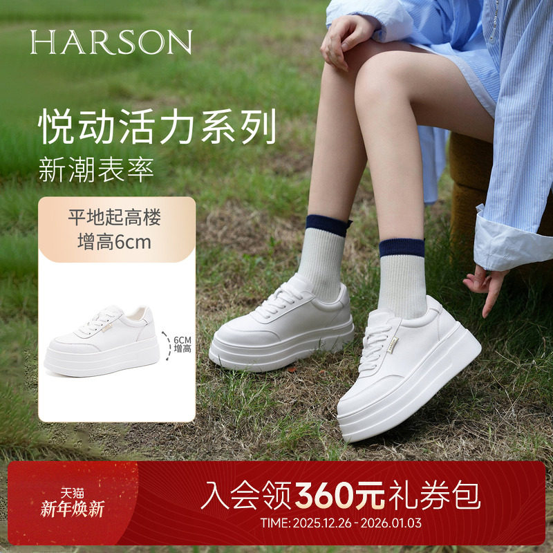 哈森/HARSON【悦动活力】25秋新款厚底增高小白鞋百搭休闲板鞋