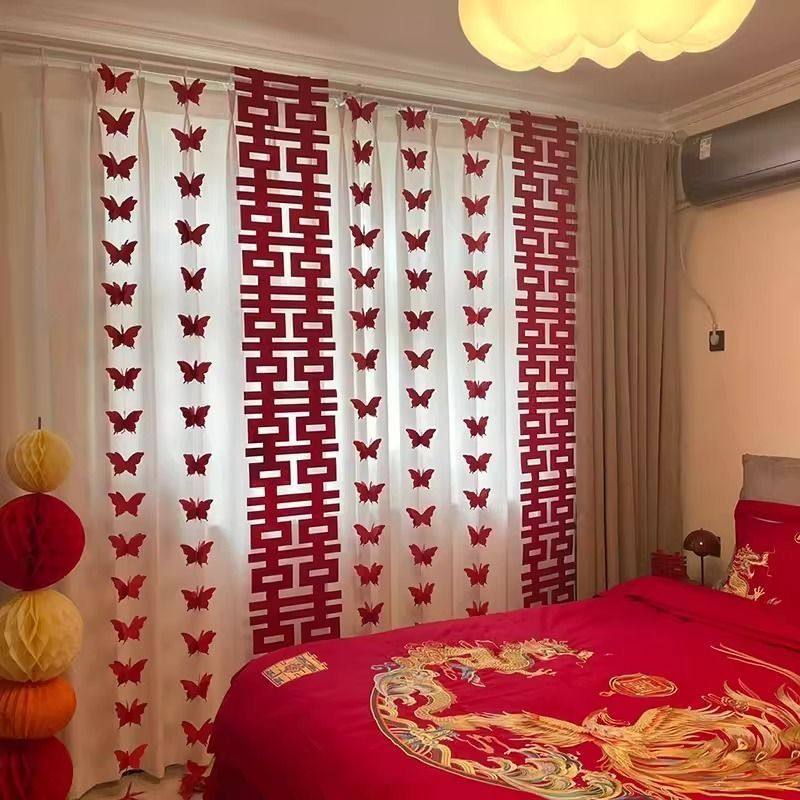 婚房布置长条喜字条幅套装窗帘蝴蝶挂件拉花卧室婚礼客厅装饰结婚