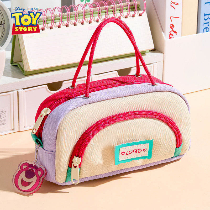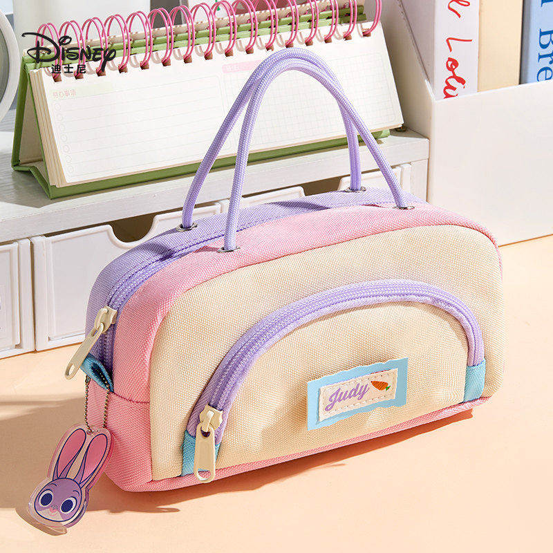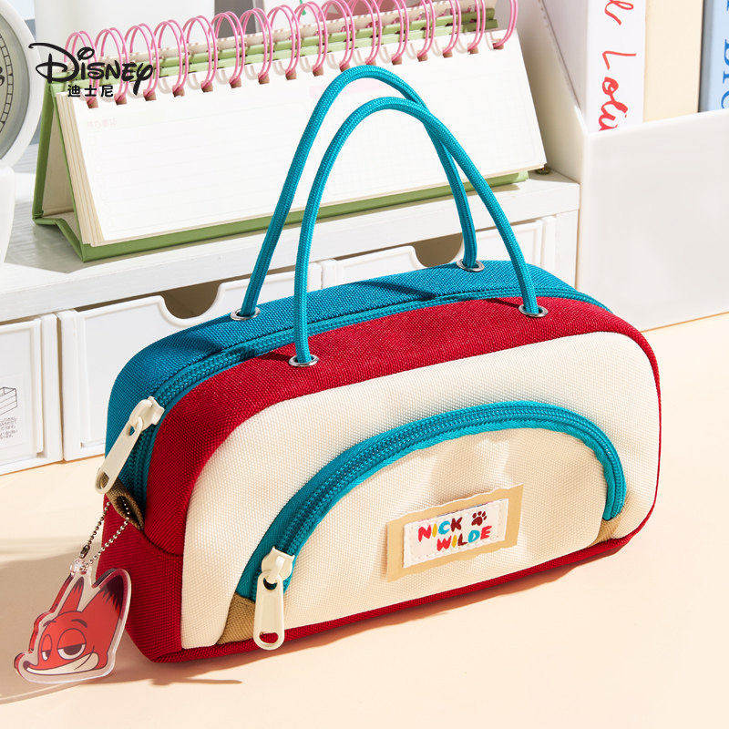 迪士尼撞色拼接笔袋可爱卡通学生文具袋高颜值小众铅笔收纳袋儿童男孩简约多功能收纳包女生大容量带提手笔袋