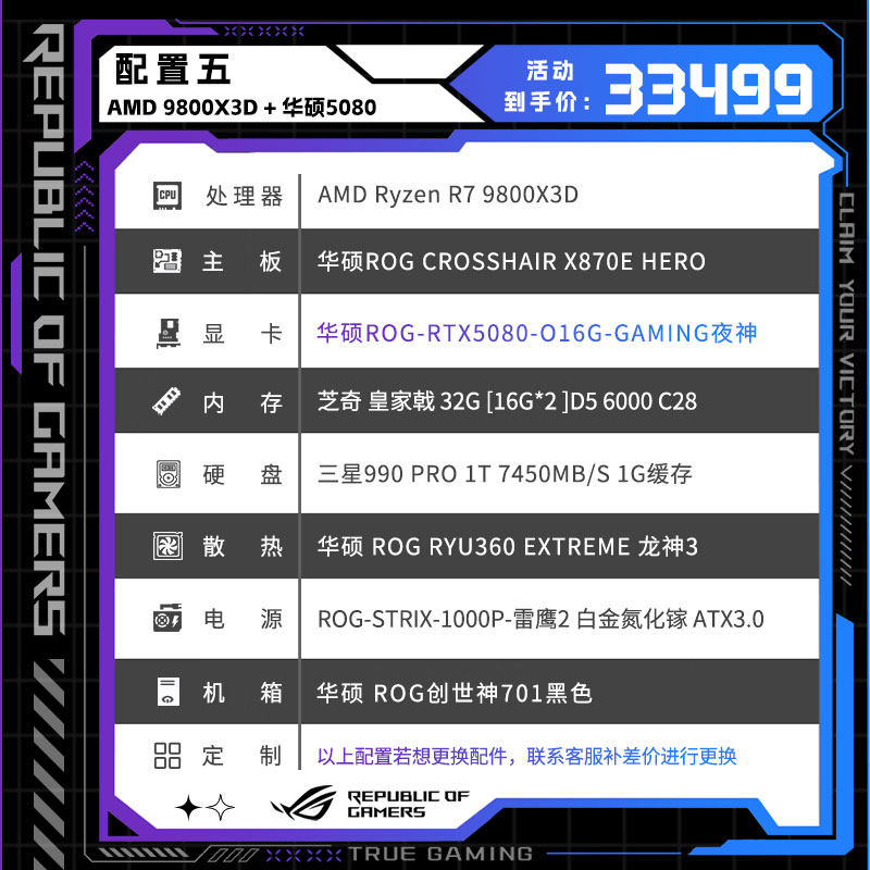 华硕5090D夜神显卡9950X3D电竞主机DIY组装机台式RTX5080电脑整机