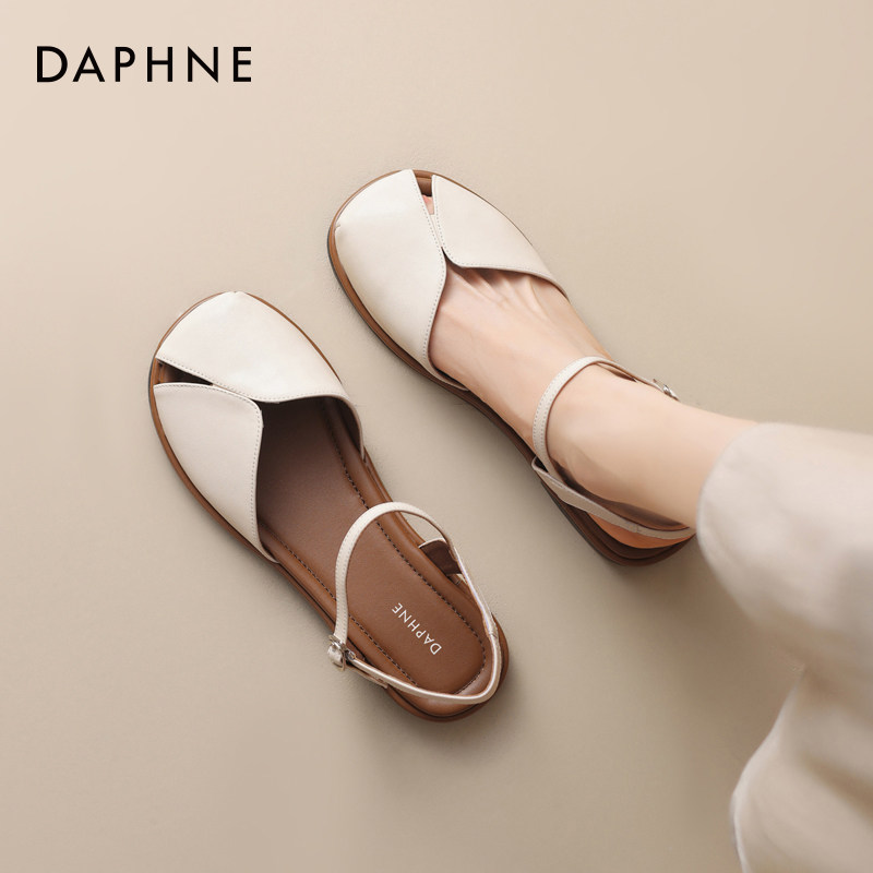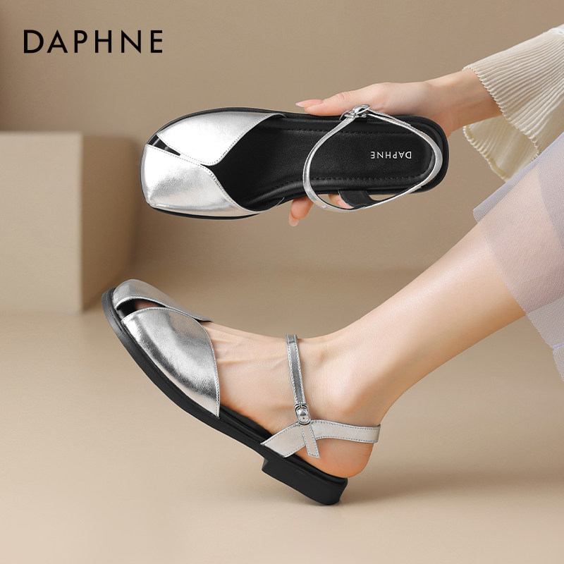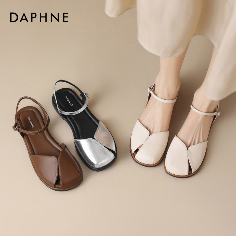 达芙妮镂空包头凉鞋女2025新款夏外穿法式平底沙滩罗马女士凉拖鞋