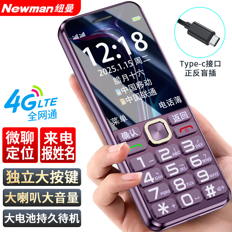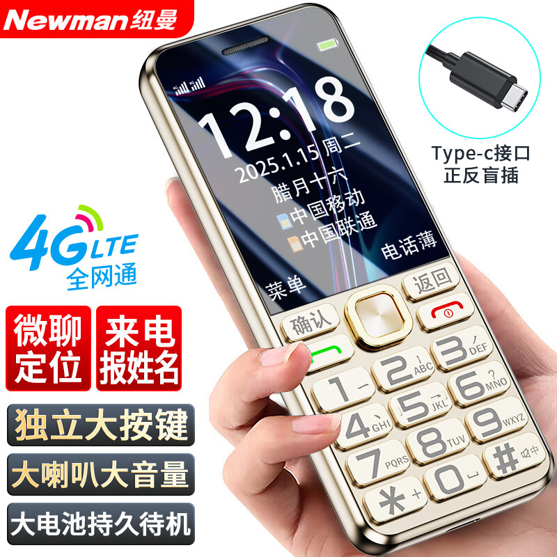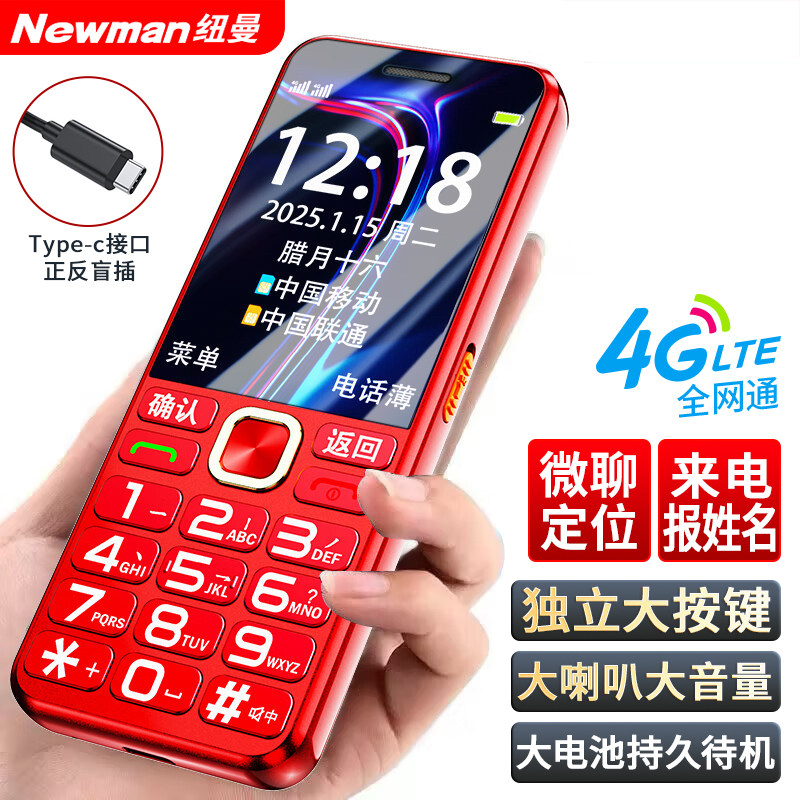 [官方旗舰店]纽曼N105正品老人手机超长待机老年机大屏大字大声4G全网通移动联通电信版男女学生非智能按键机