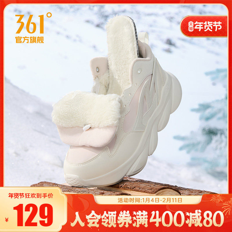 361灵狐女鞋加毛运动鞋冬季高帮加绒保暖大棉鞋皮面防水跑步鞋女