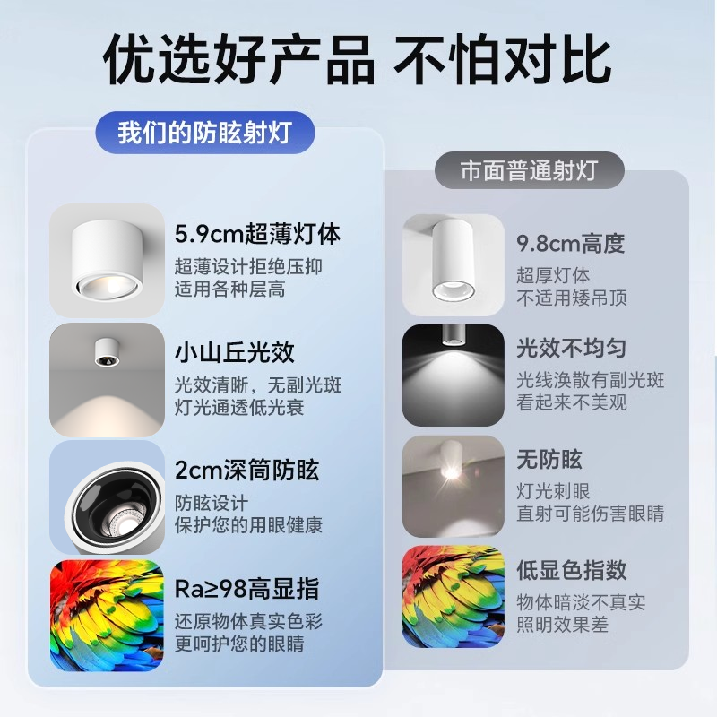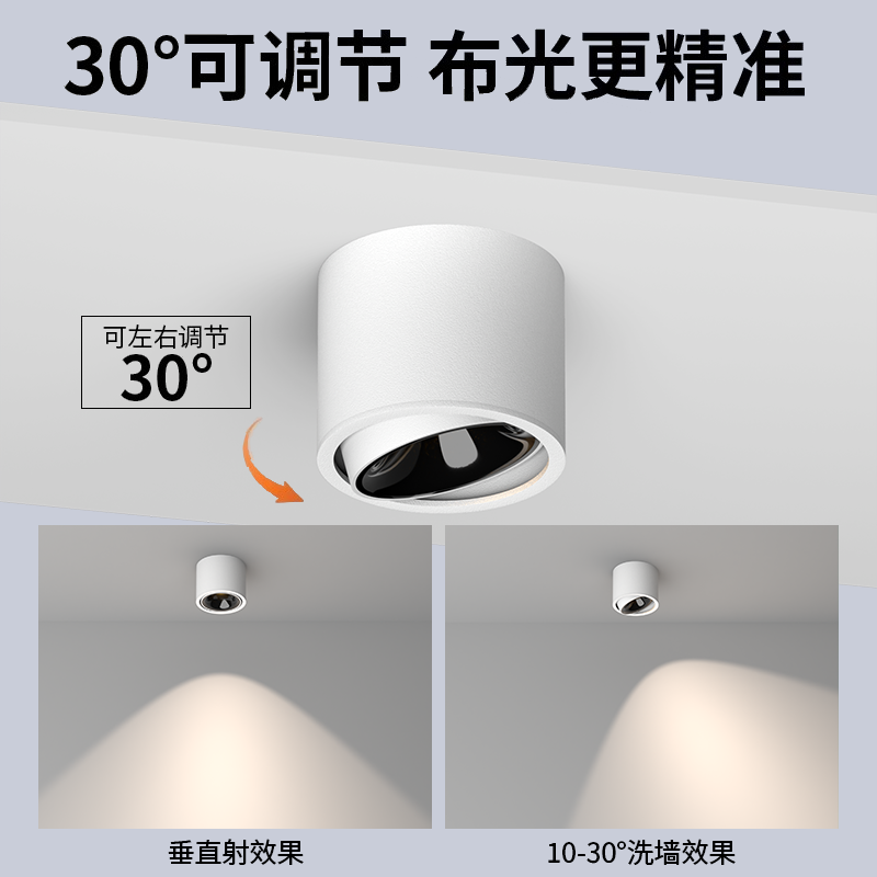 智能明装射灯防眩可调角度免打孔小山丘客厅家用天花灯圆形无主灯