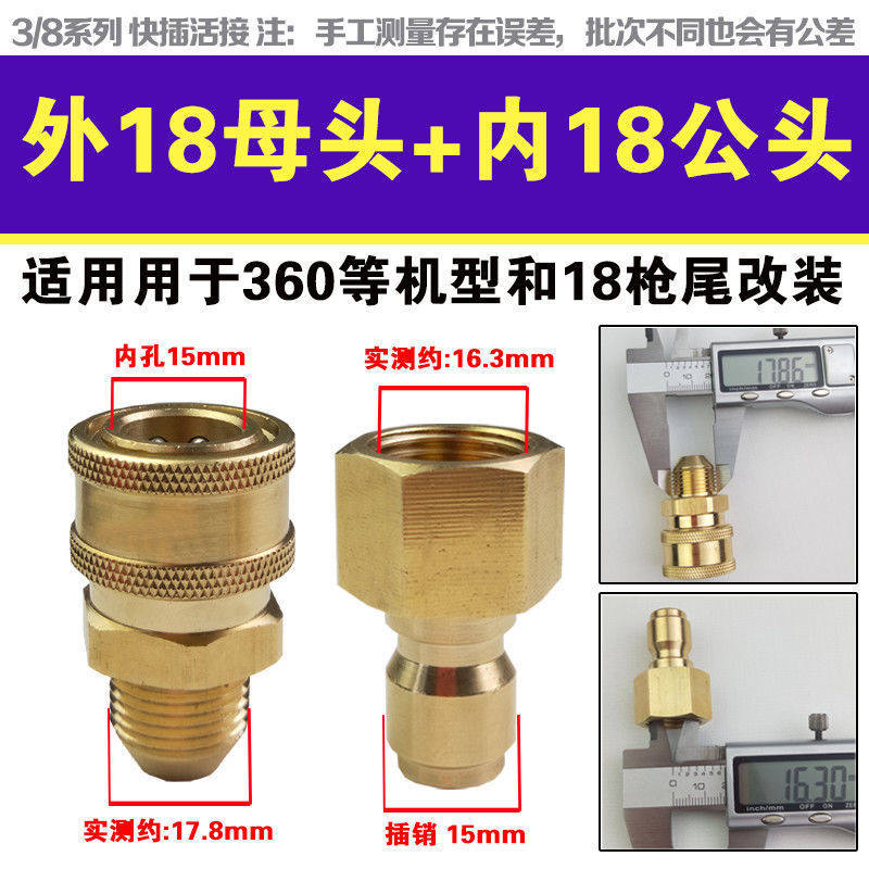 3/8高压水枪水管快速接头洗车机防缠绕清洗机转换快接铜380配件