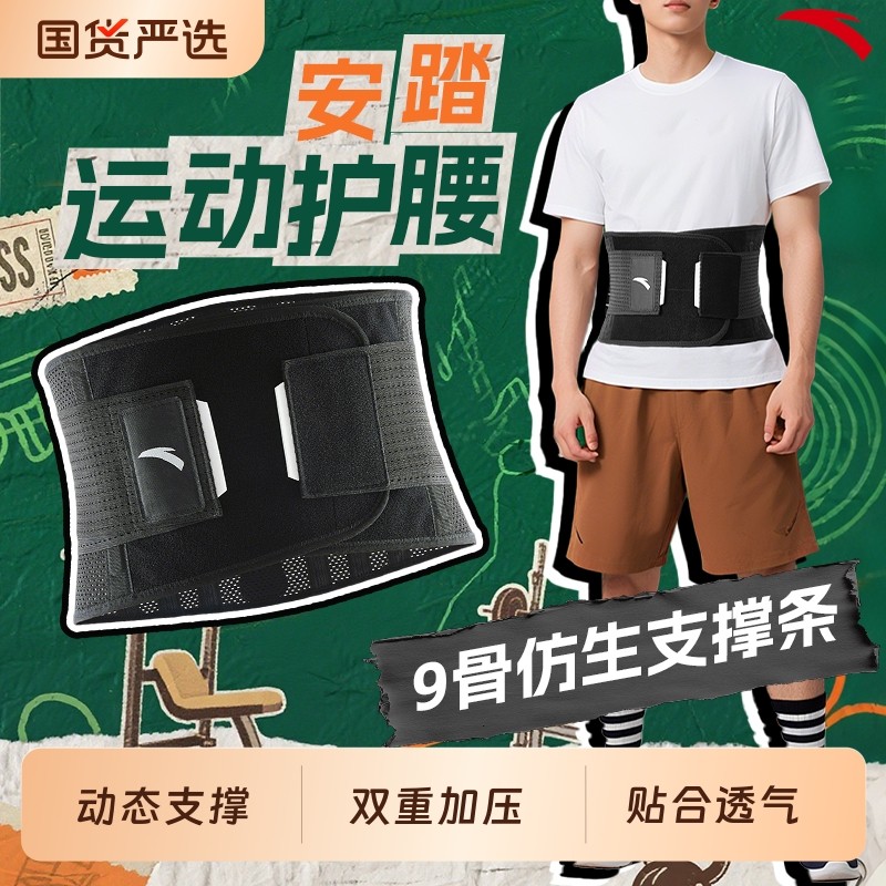 安踏护腰运动健身腰带男士专业篮球当兵跑步深蹲训练女收腹带束腰