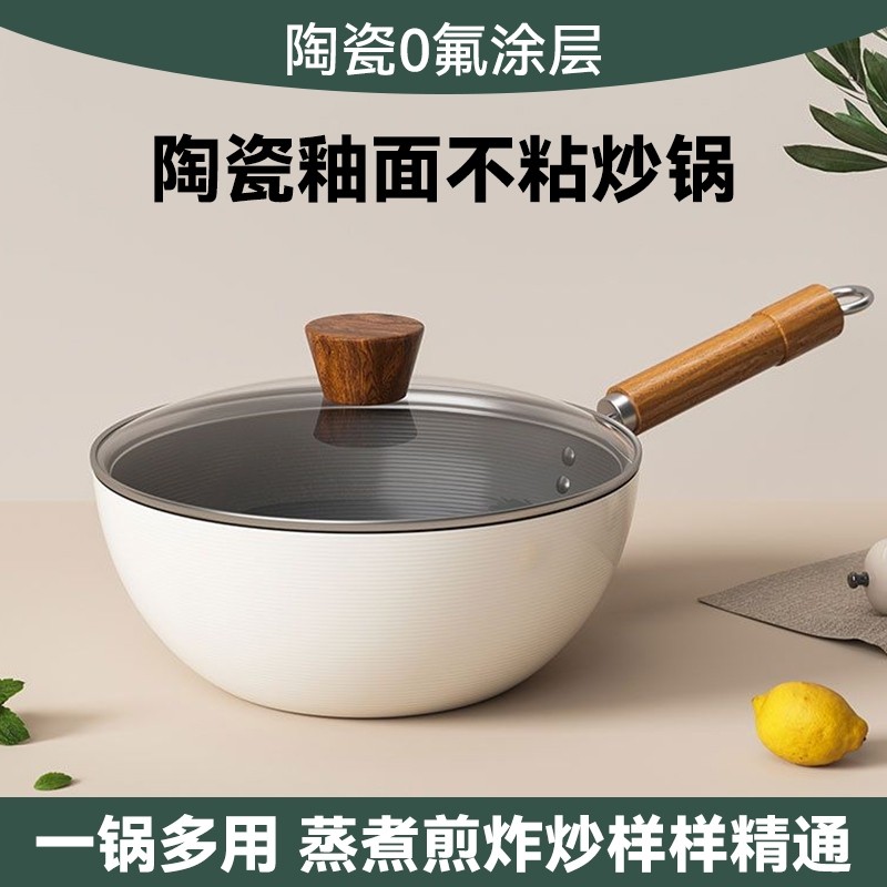 德国钛陶瓷釉炒锅家用炒菜锅一人食铁锅不粘锅炒菜锅通用炉灶平底