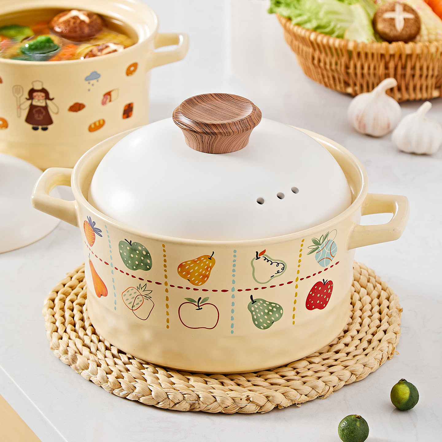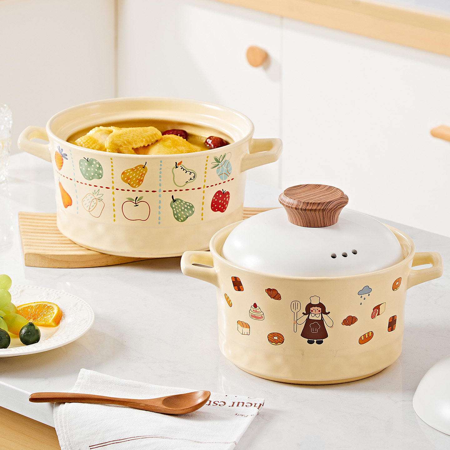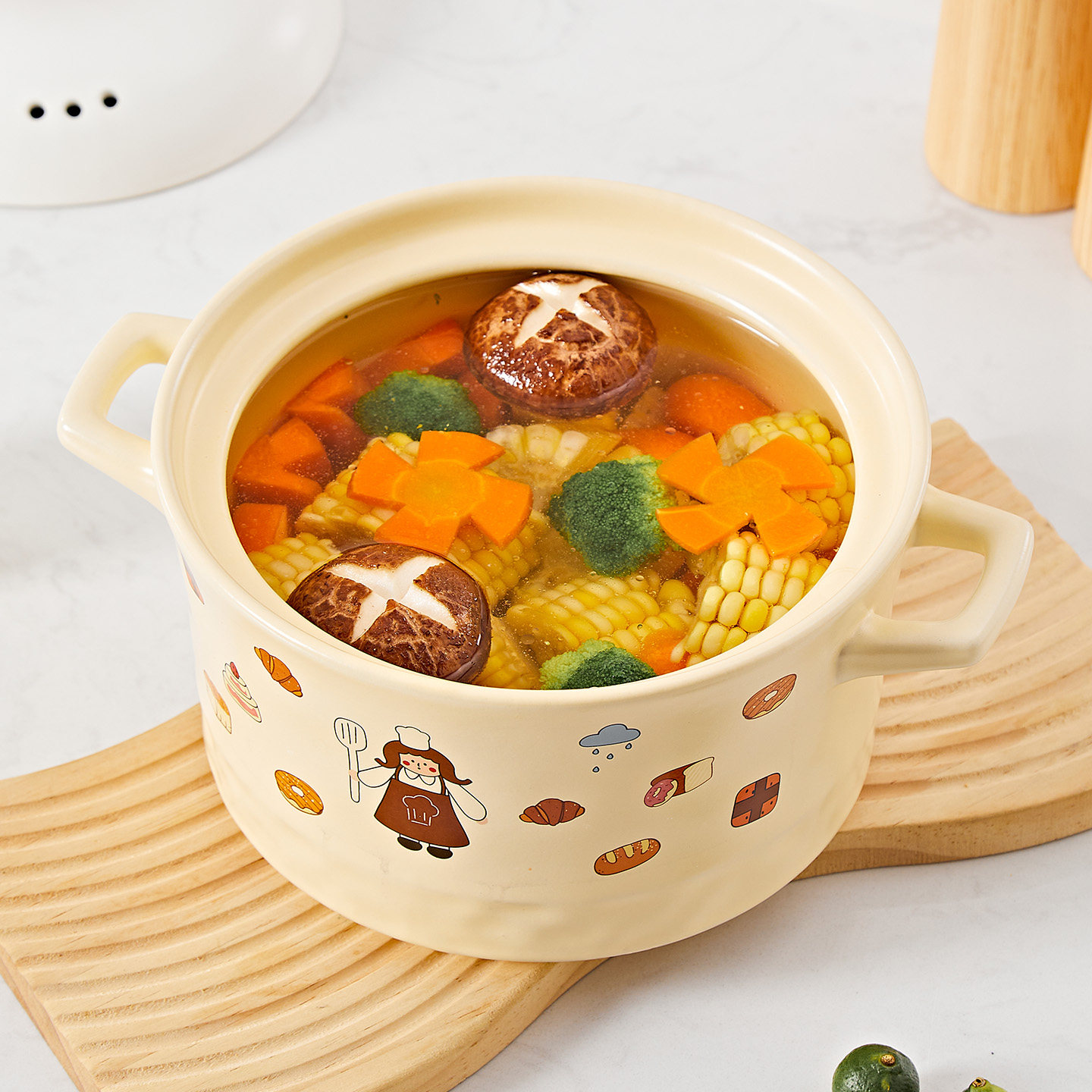 陶瓷砂锅家用高颜值煤气灶专用大汤锅燃气灶耐高温干烧不裂奶油风
