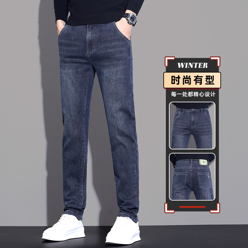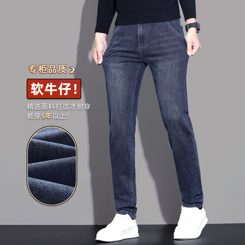 撤标撤柜(B)新款蓝色牛仔裤男秋冬修身小脚弹力男士休闲长裤裤子