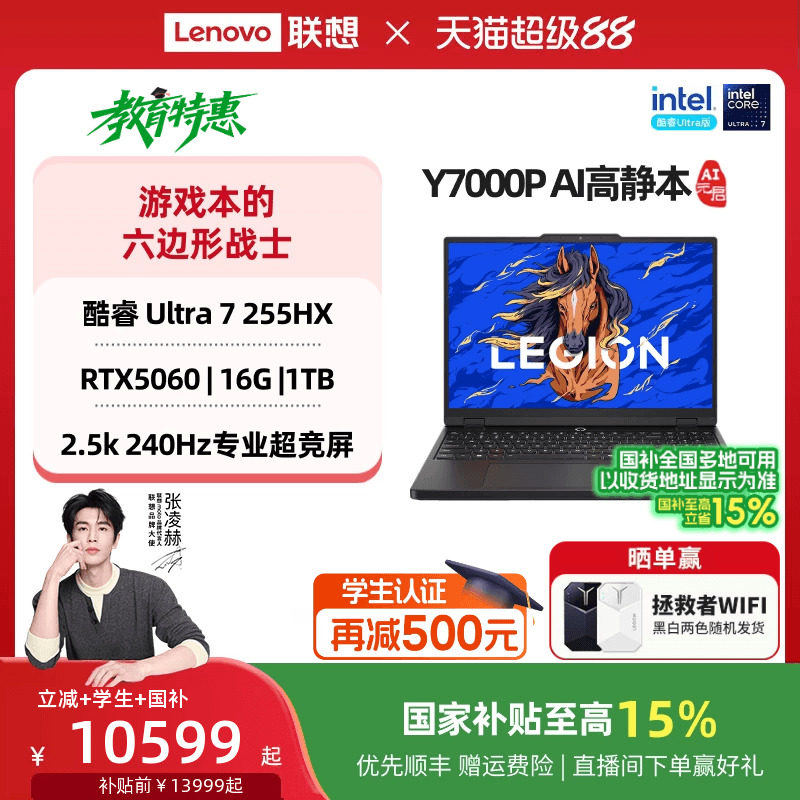 【国家补贴】联想拯救者Y7000P 酷睿Ultra7 255HX RTX5060 AI高静游戏本电竞笔记本电脑 大学生笔记本电脑