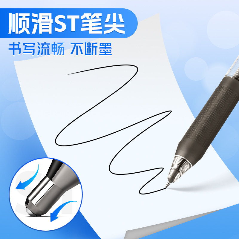 晨光中性笔按动式黑色水笔红色蓝色速干顺滑大容量学生用碳素笔