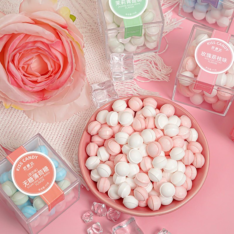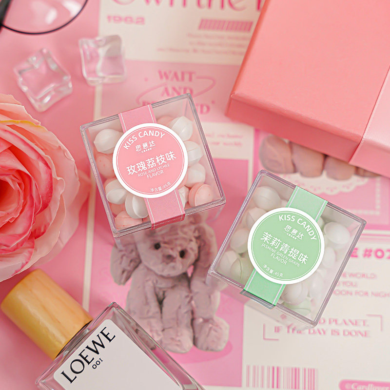 接吻糖无糖薄荷糖口气清新学生上课口香糖香体糖果盒装水果味零食