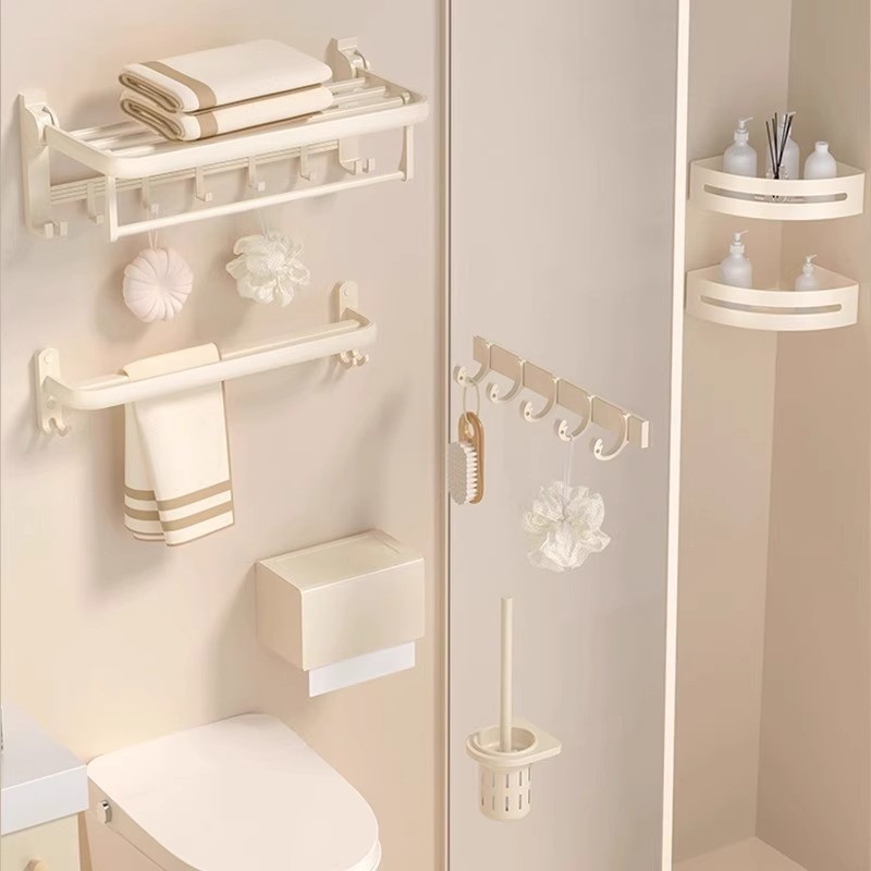 奶油风毛巾架免打孔卫生间奶白色置物浴巾架浴室卫浴五金挂件套装