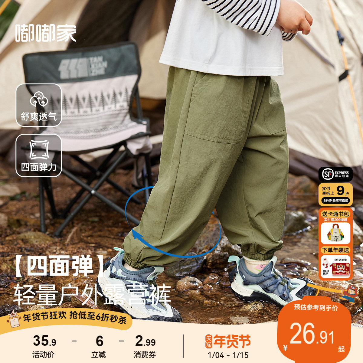 【四面弹】嘟嘟家儿童裤子春季户外宝宝长裤春装休闲裤男童运动裤