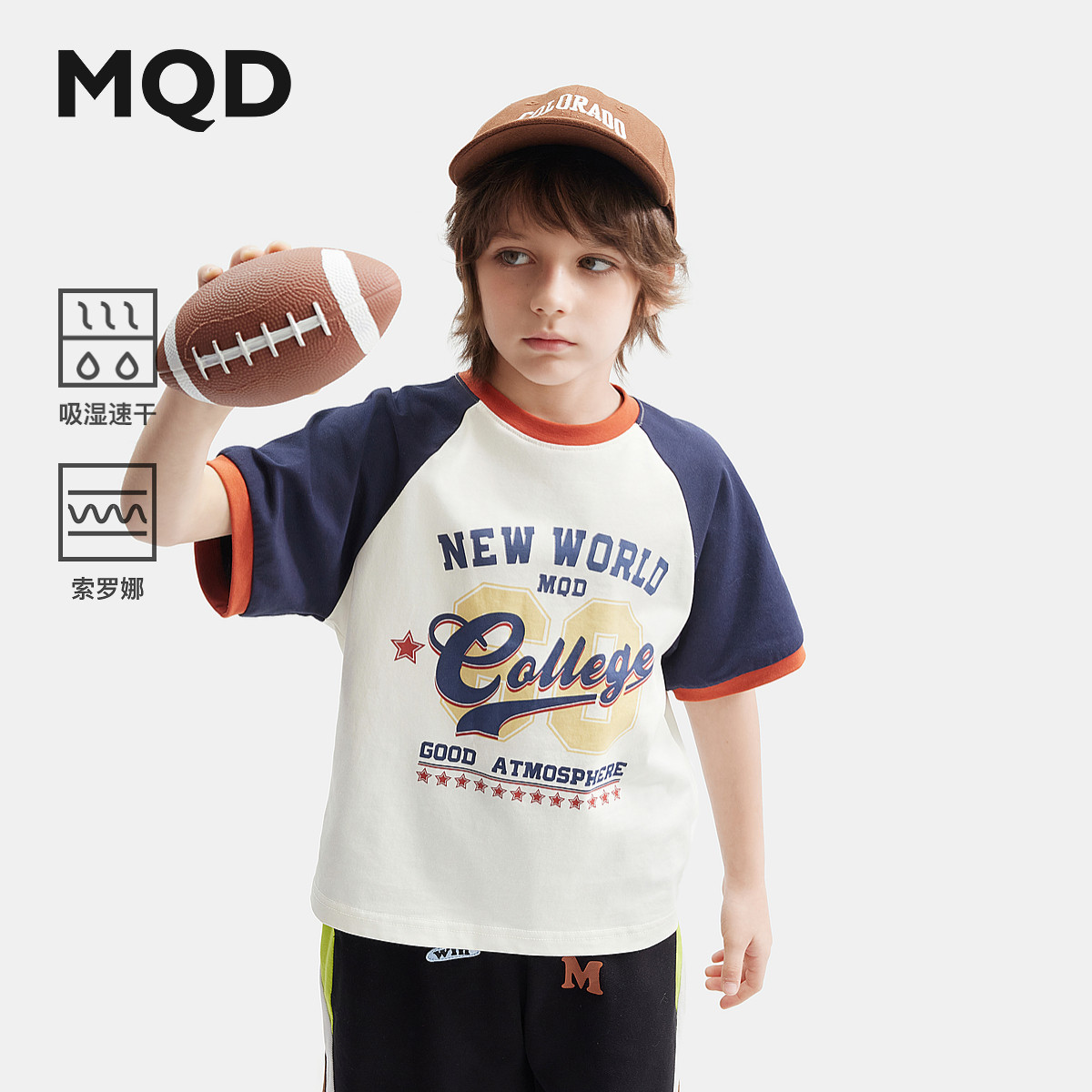 【吸湿速干】MQD童装男童学院短袖T恤夏装新款儿童水印体恤