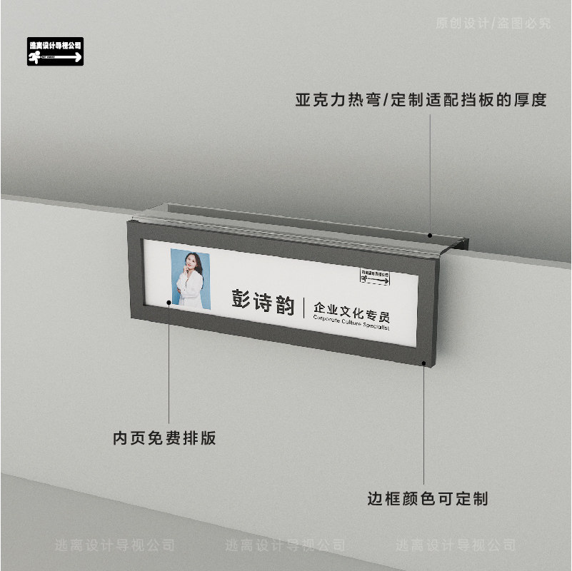 简约高级公司办公员工座位职位名牌亚克力单双面屏风可更换可定制