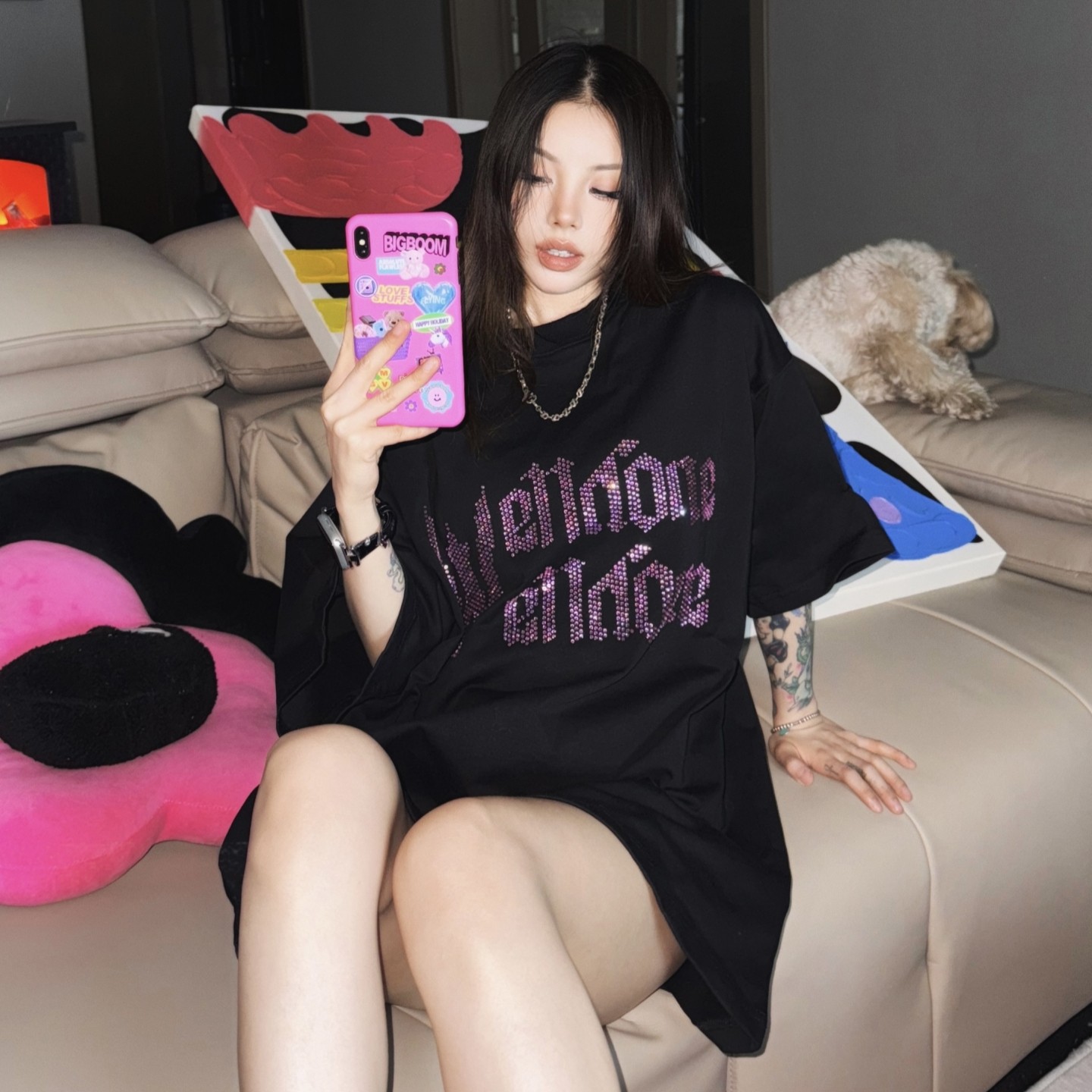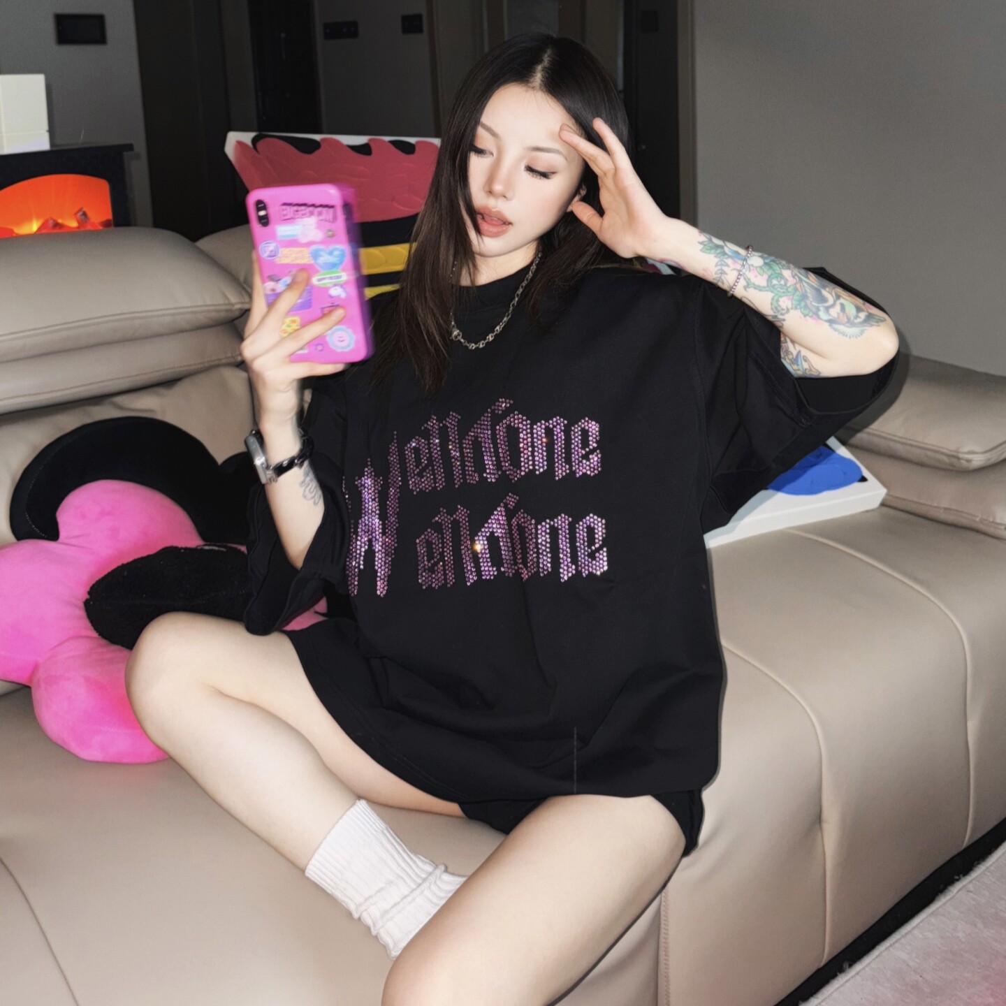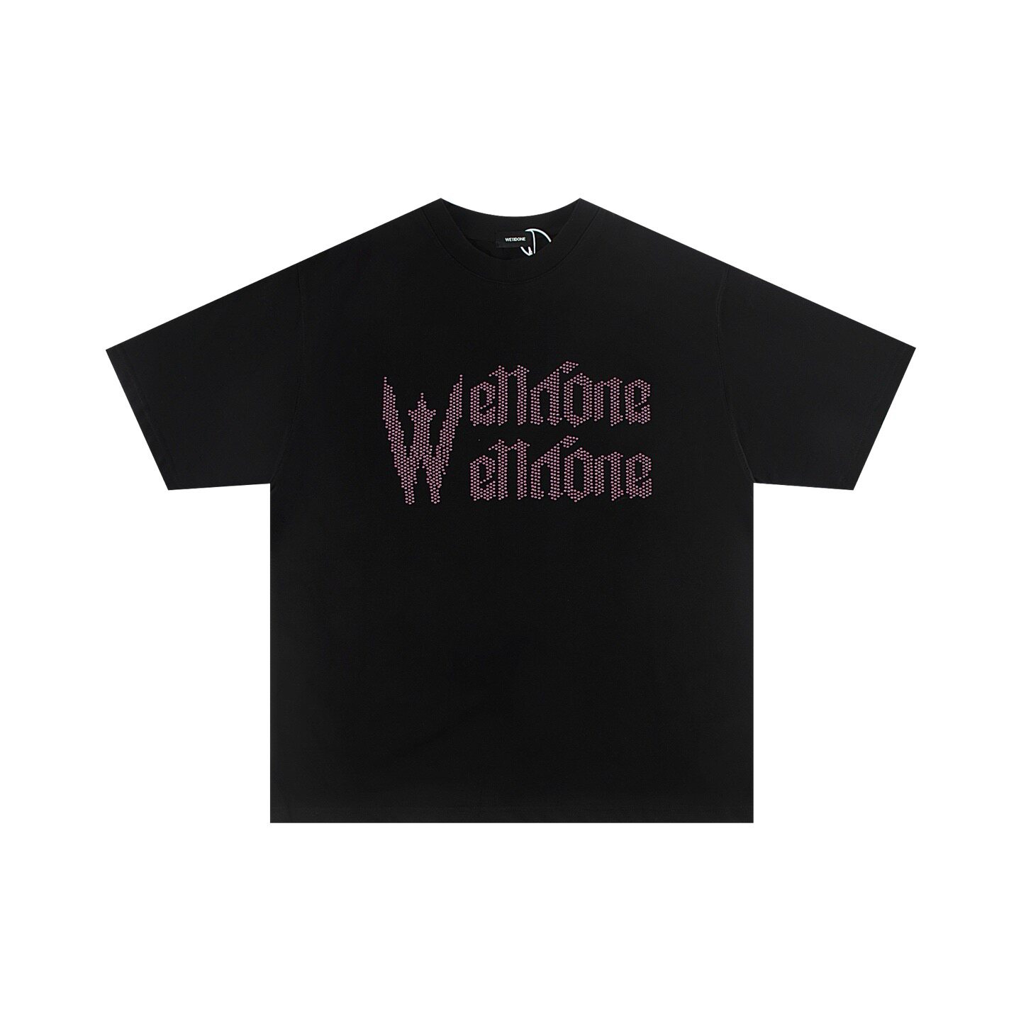 WE11DONE WHITE珍珠烫钻字母印花短袖美式夏季休闲宽松潮牌T恤TEE
