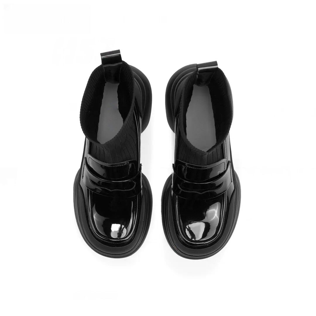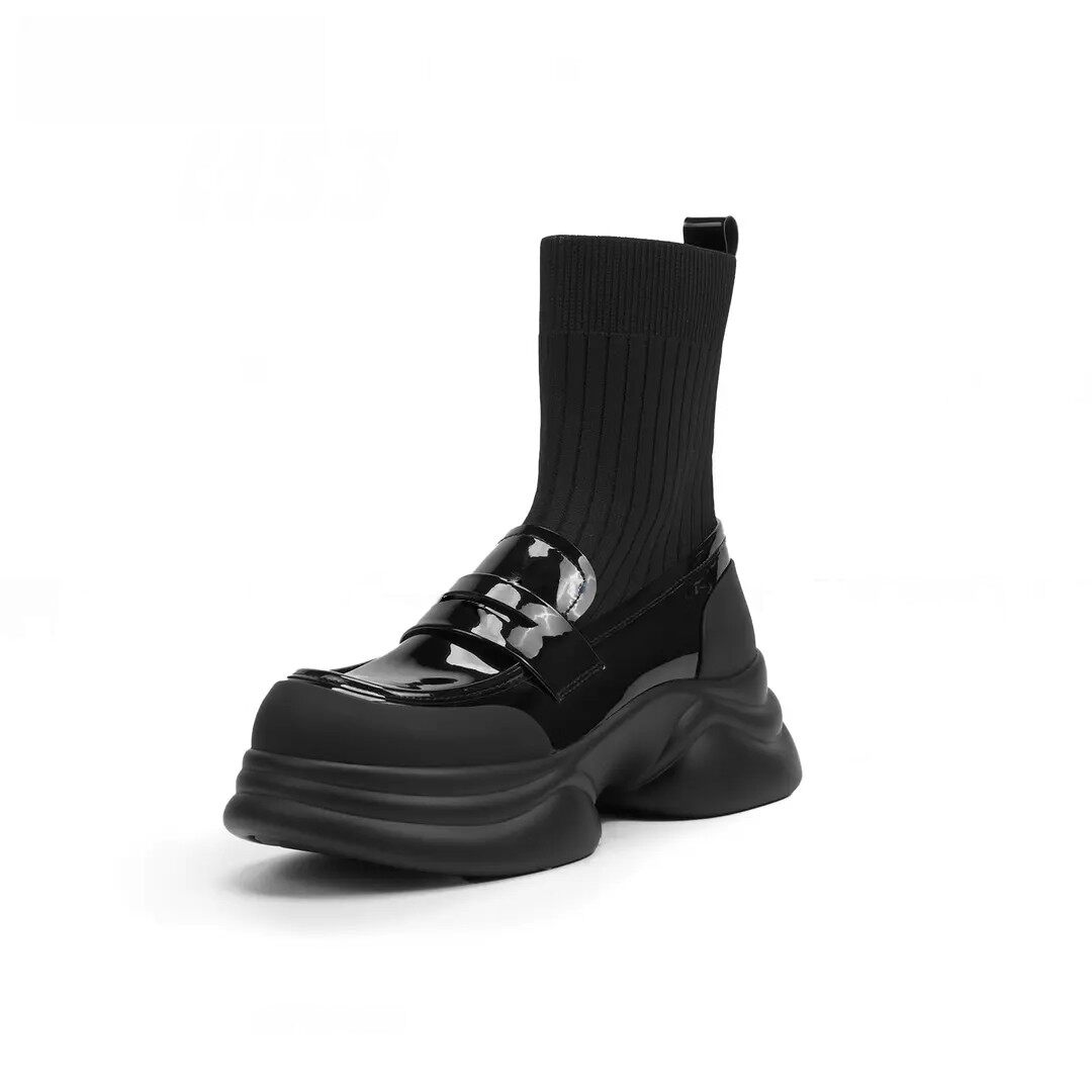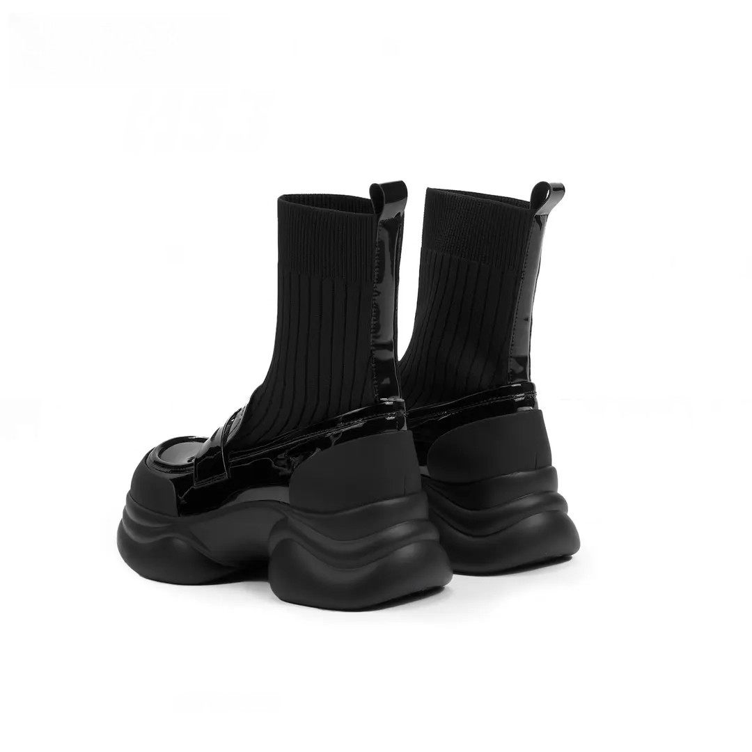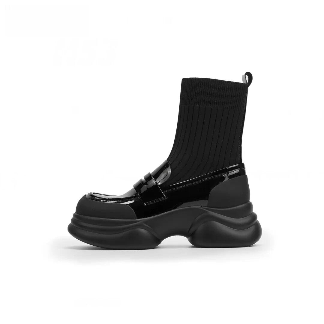 2025新款厚底袜靴女圆头显瘦弹力靴百搭拼接瘦瘦靴6.5CM高跟短筒