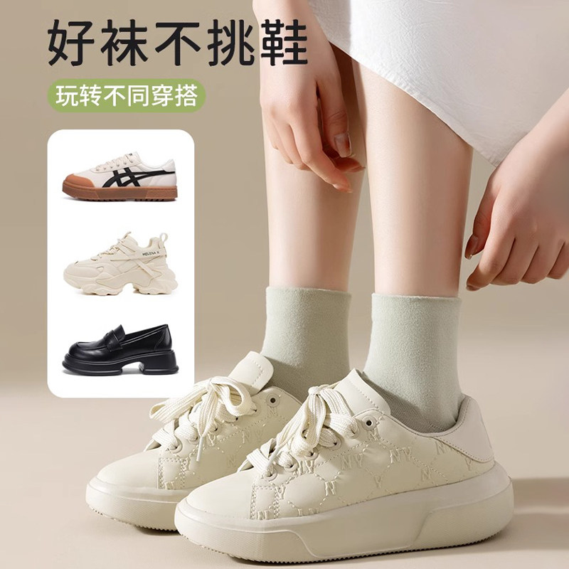棉竹屋袜子女款短袜纯棉春秋季2025新款爆款无骨防臭中筒运动袜