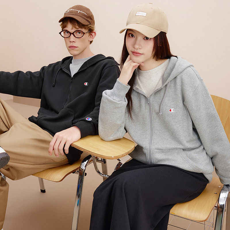 Champion冠军卫衣春秋款开衫连帽情侣春秋运动拉链外套简约休闲