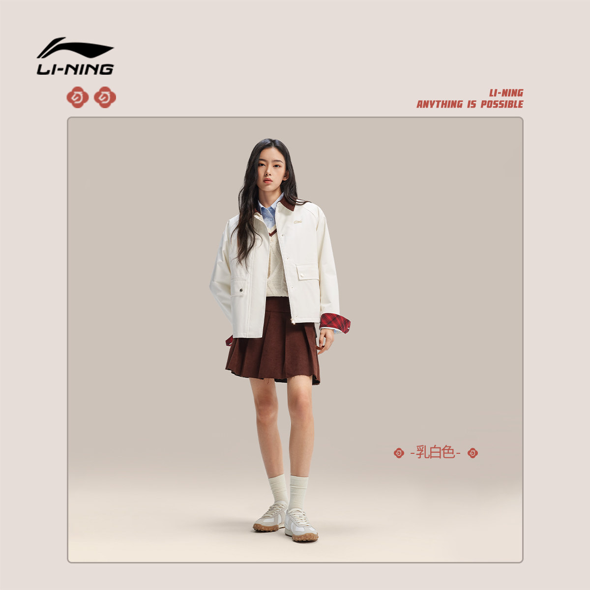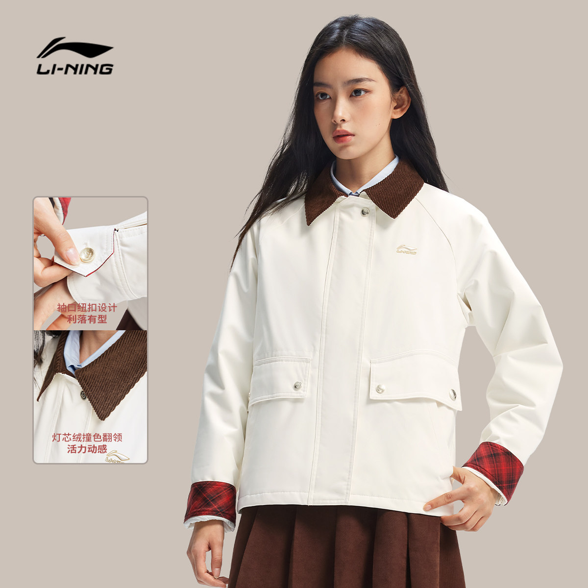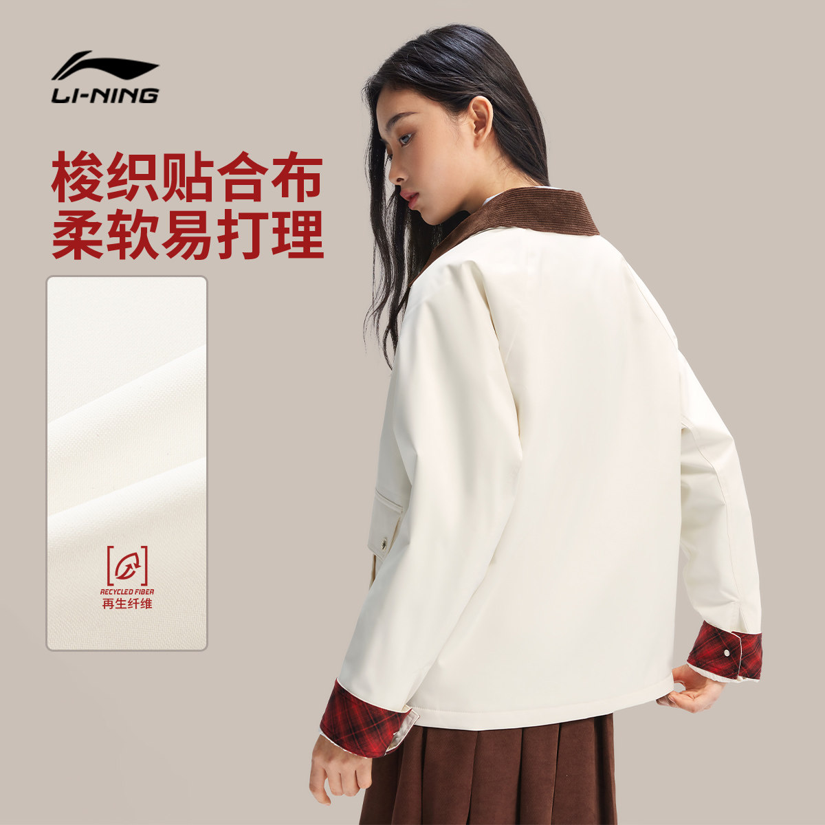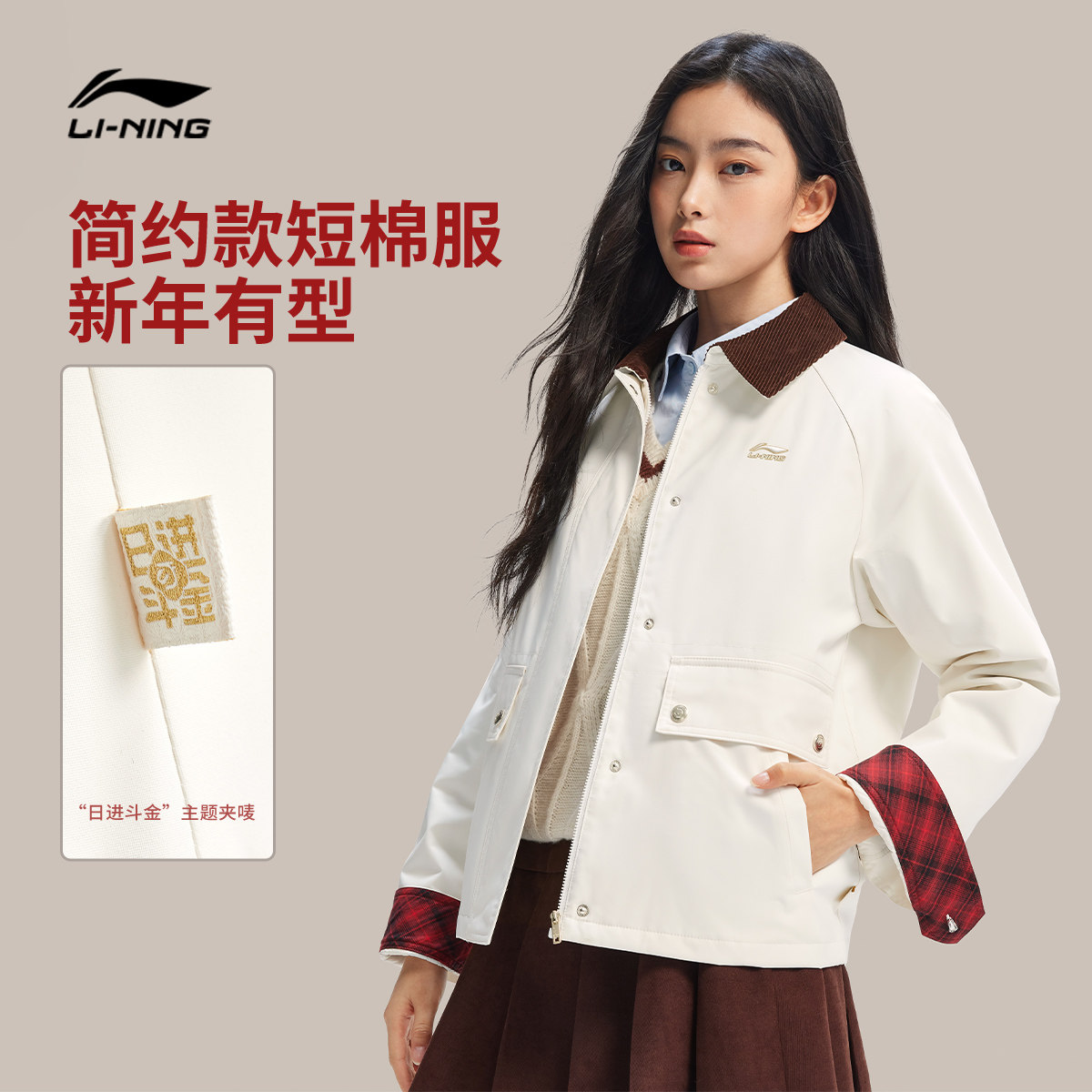 李宁日进斗金丨棉服女士春季2026新款新年外套女马年翻领运动上衣