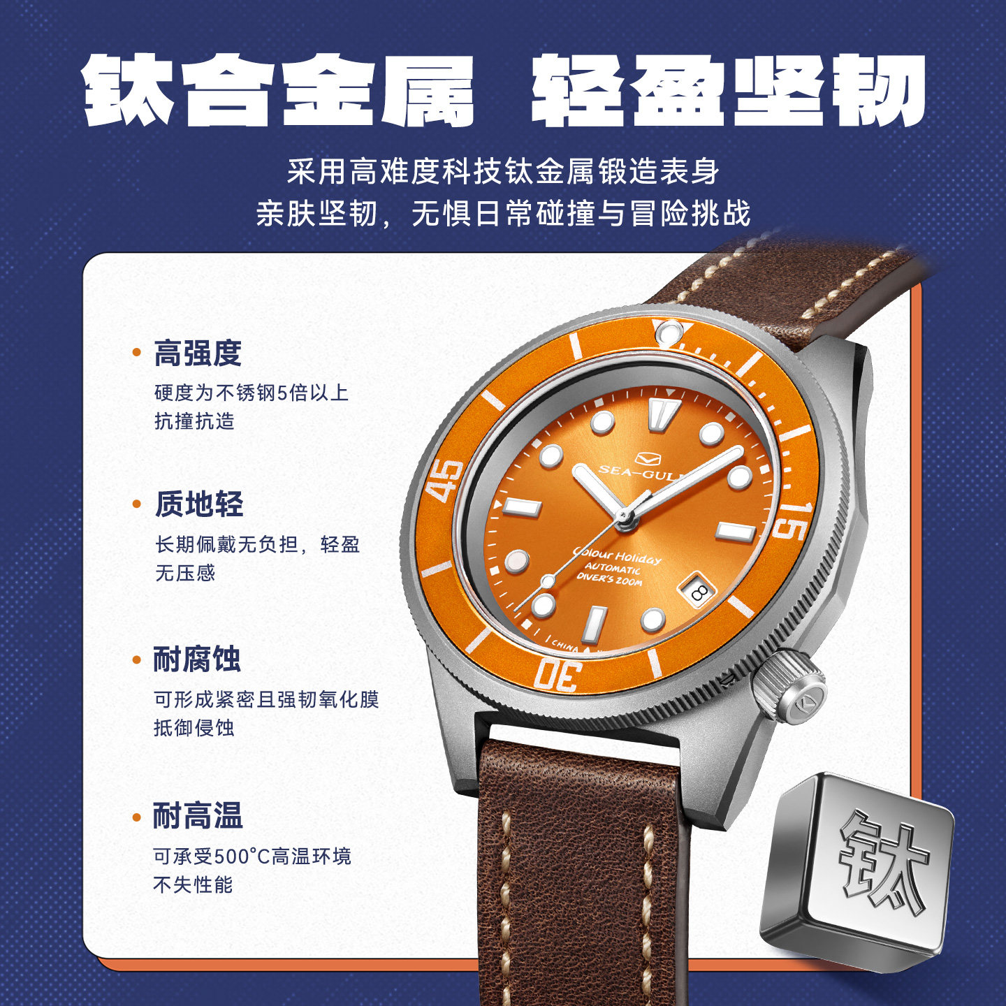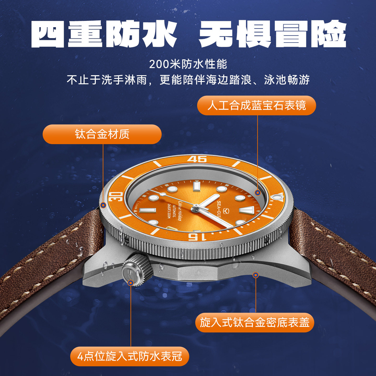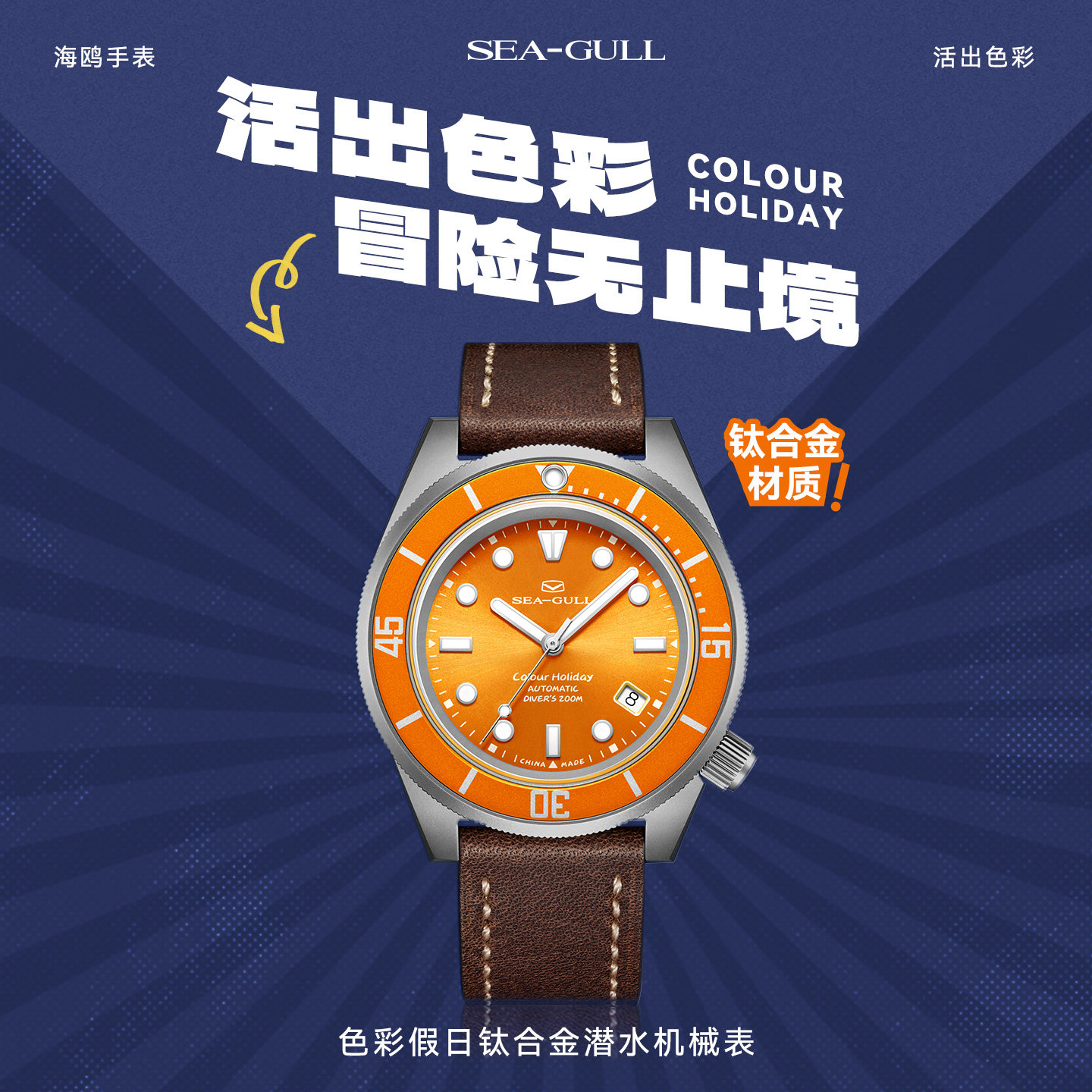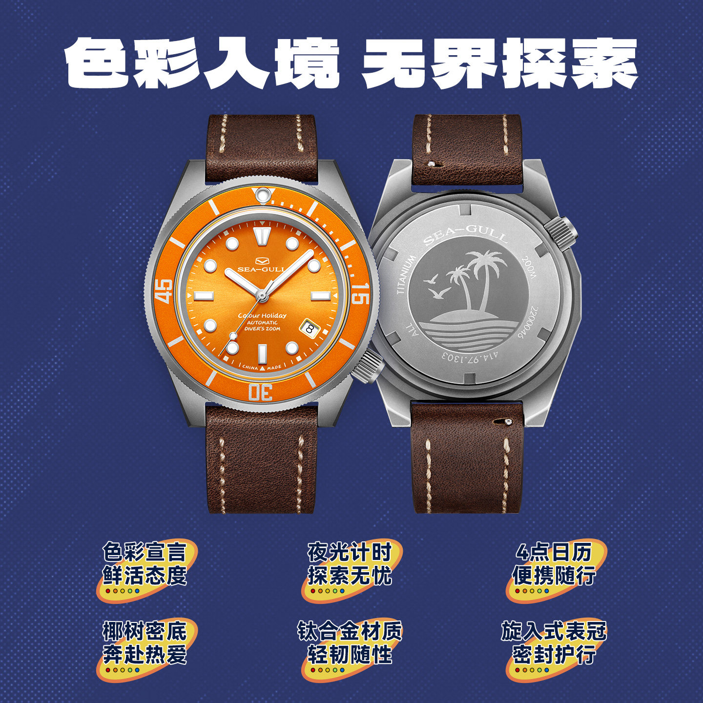 海鸥表海洋系列深度潜水表男士钛合金自动机械表多彩个性手表1301