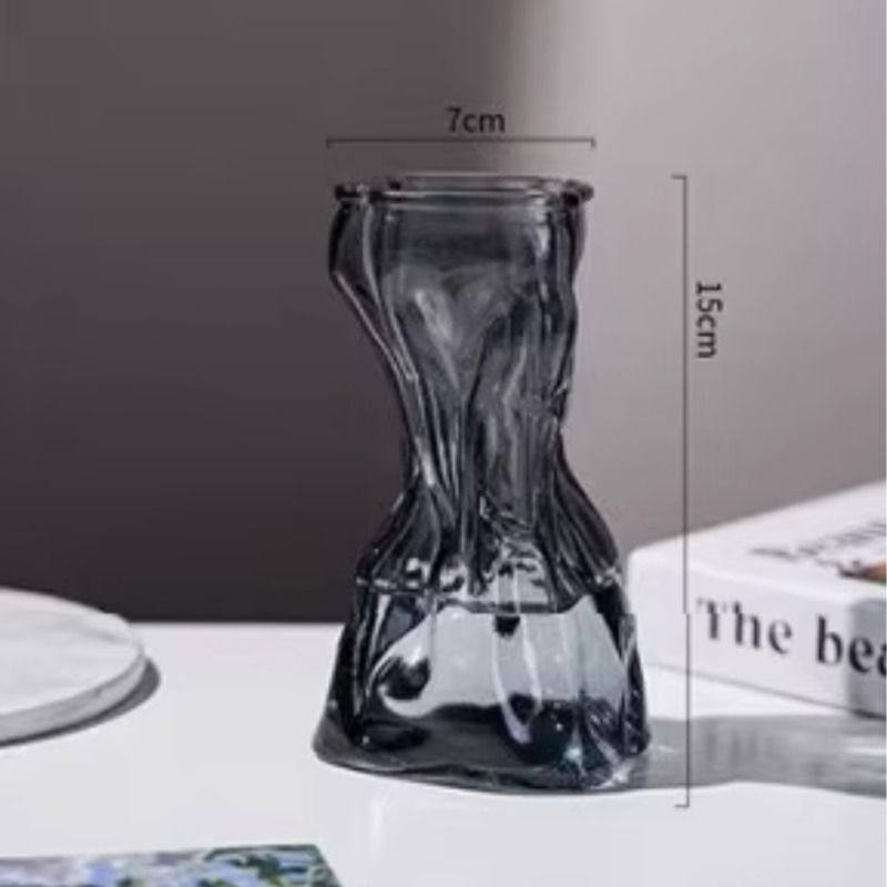 玻璃花瓶轻奢创意插花瓶歪脖客厅餐厅家居摆件台面鲜花精致透明