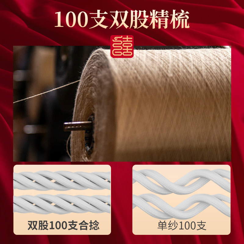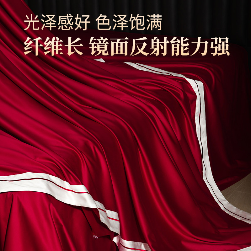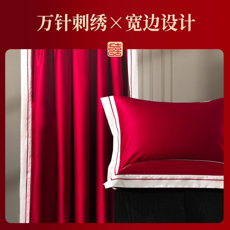 SIDANDA140支进口匹马棉婚庆四件套轻奢刺绣红色全棉结婚四件套