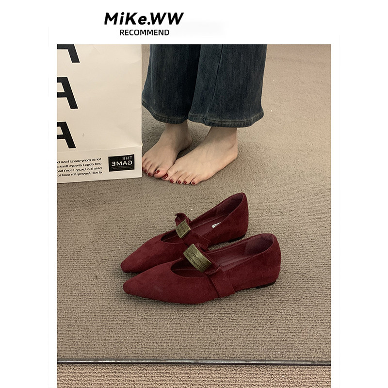 米霏~【羊皮版】红色单鞋女平底法式气质软底芭蕾瓢鞋温柔晚晚鞋