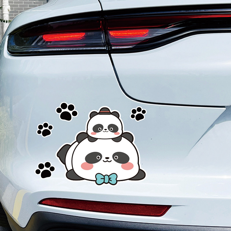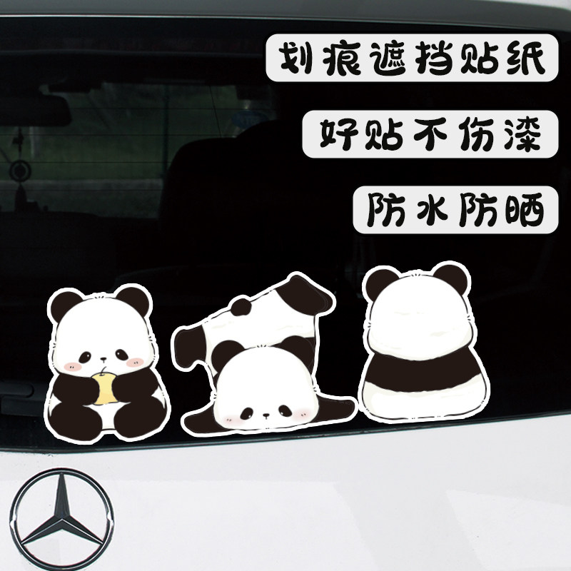 卡通熊猫车贴划痕遮挡遮盖电动车贴纸装饰贴车身车尾图案可爱贴画