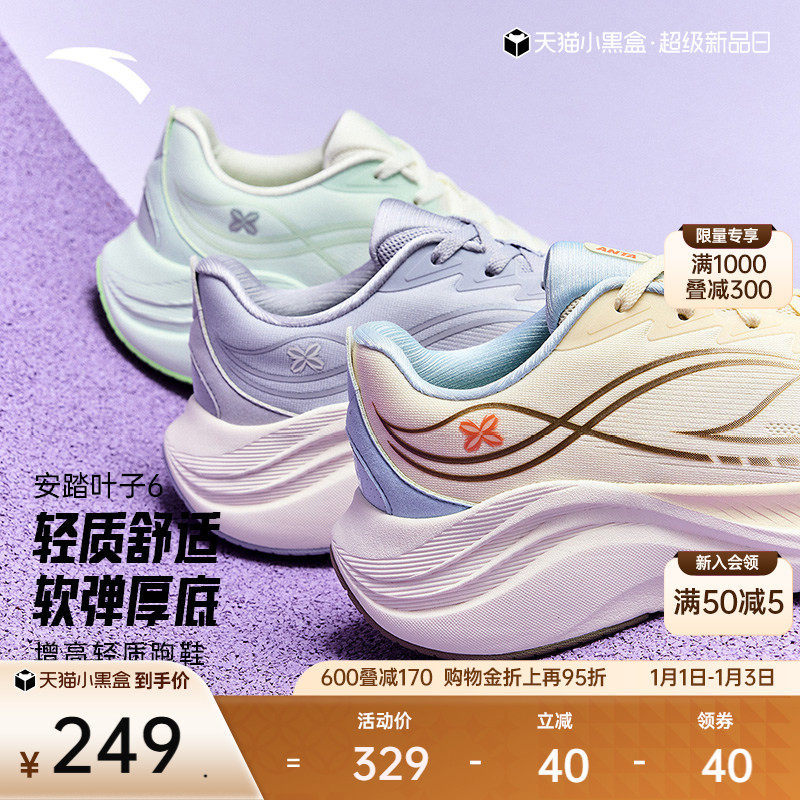 安踏叶子6丨轻质软底防泼水跑步鞋女鞋轻便耐磨运动鞋有氧慢跑鞋