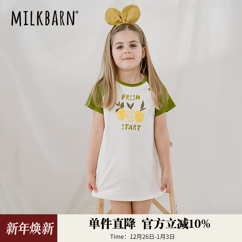 Milkbarn女童连衣裙儿童短袖T恤裙子女孩宝宝夏季公主裙