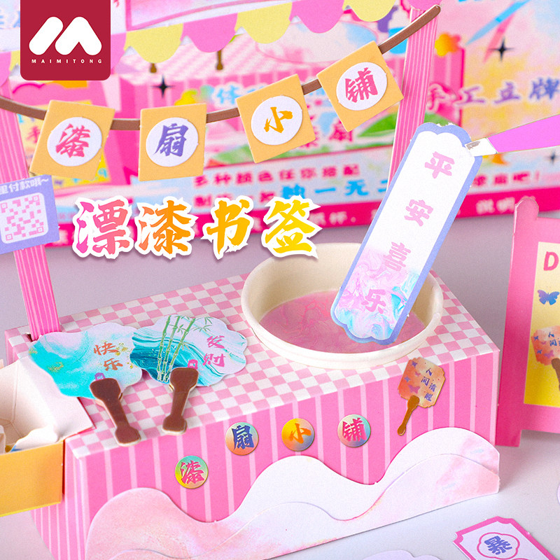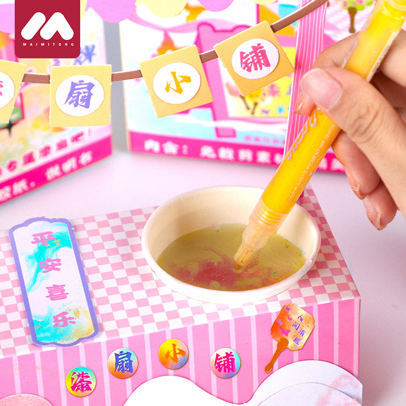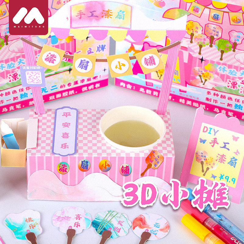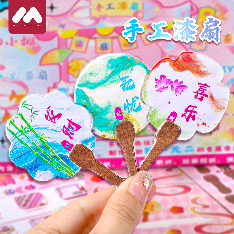 迷你漆扇小铺DIY小手工颜料素材包儿童女孩玩具加厚宣纸带字团扇手绘古风非遗文化空白漆扇套装扇子女孩子