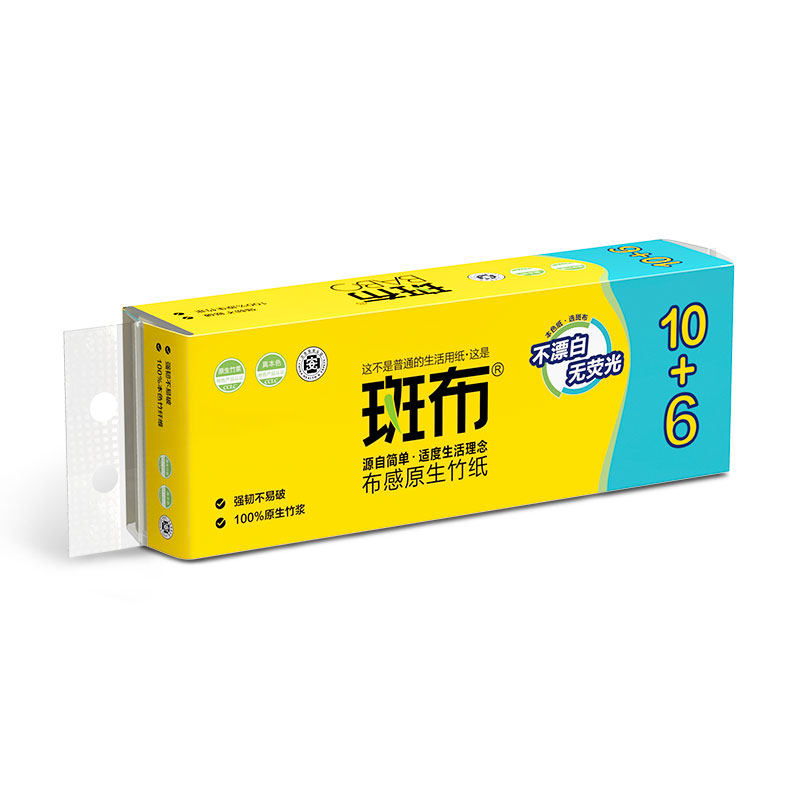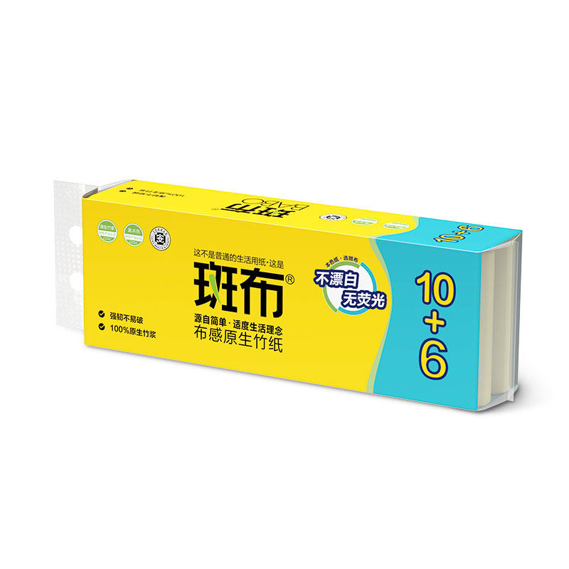 斑布卷纸家用实惠纸巾本色卫生纸4层加厚54节/卷16卷竹浆原生可溶