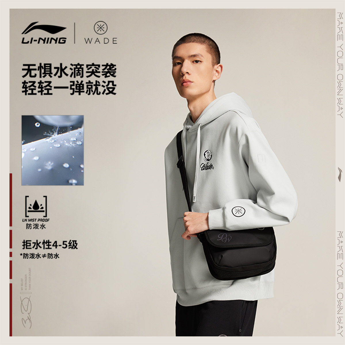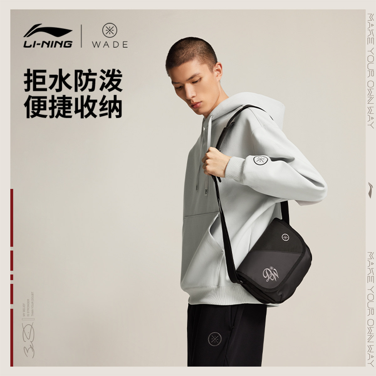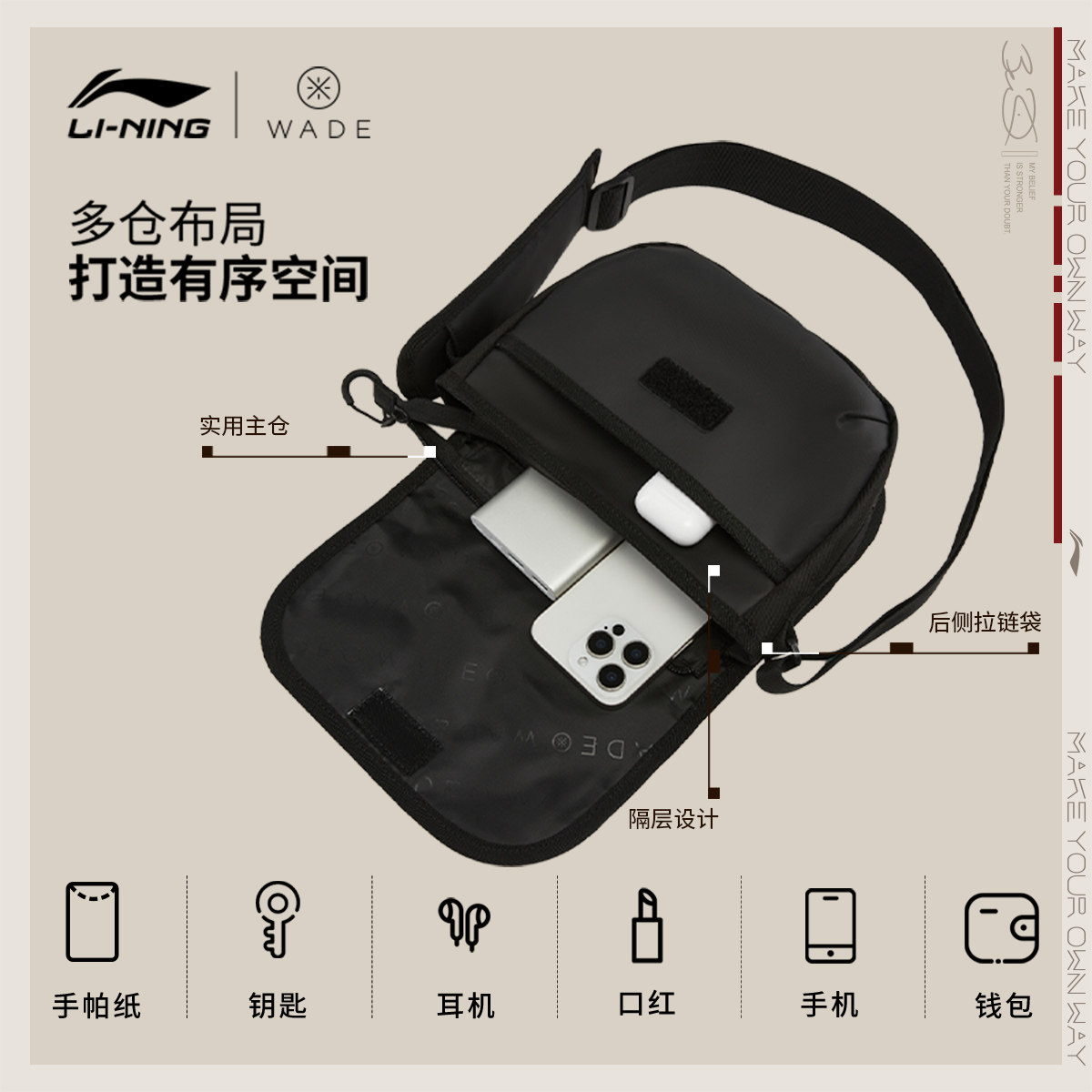 李宁斜挎包男士2026新款官方正品韦德潮酷轻便通勤运动包手机包女