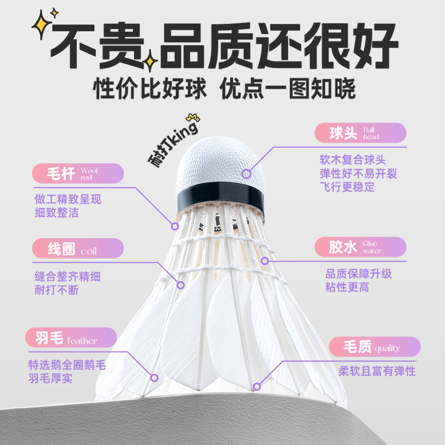 AIMETIME羽毛球真羽毛专业耐打王耐用鹅毛训练球比赛防风稳定飞行