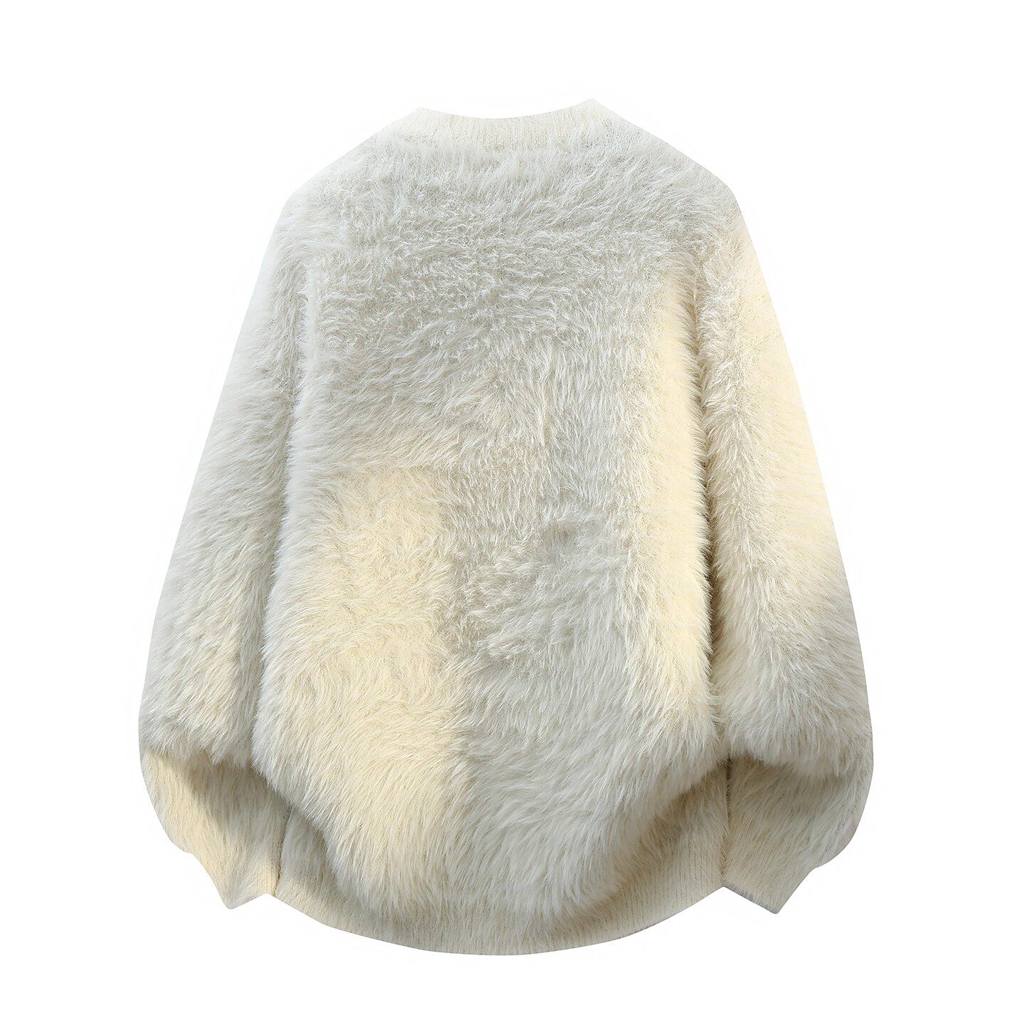 水貂绒毛衣男士秋冬季渐变色圆领针织衫男生内搭青少年保暖毛线衣