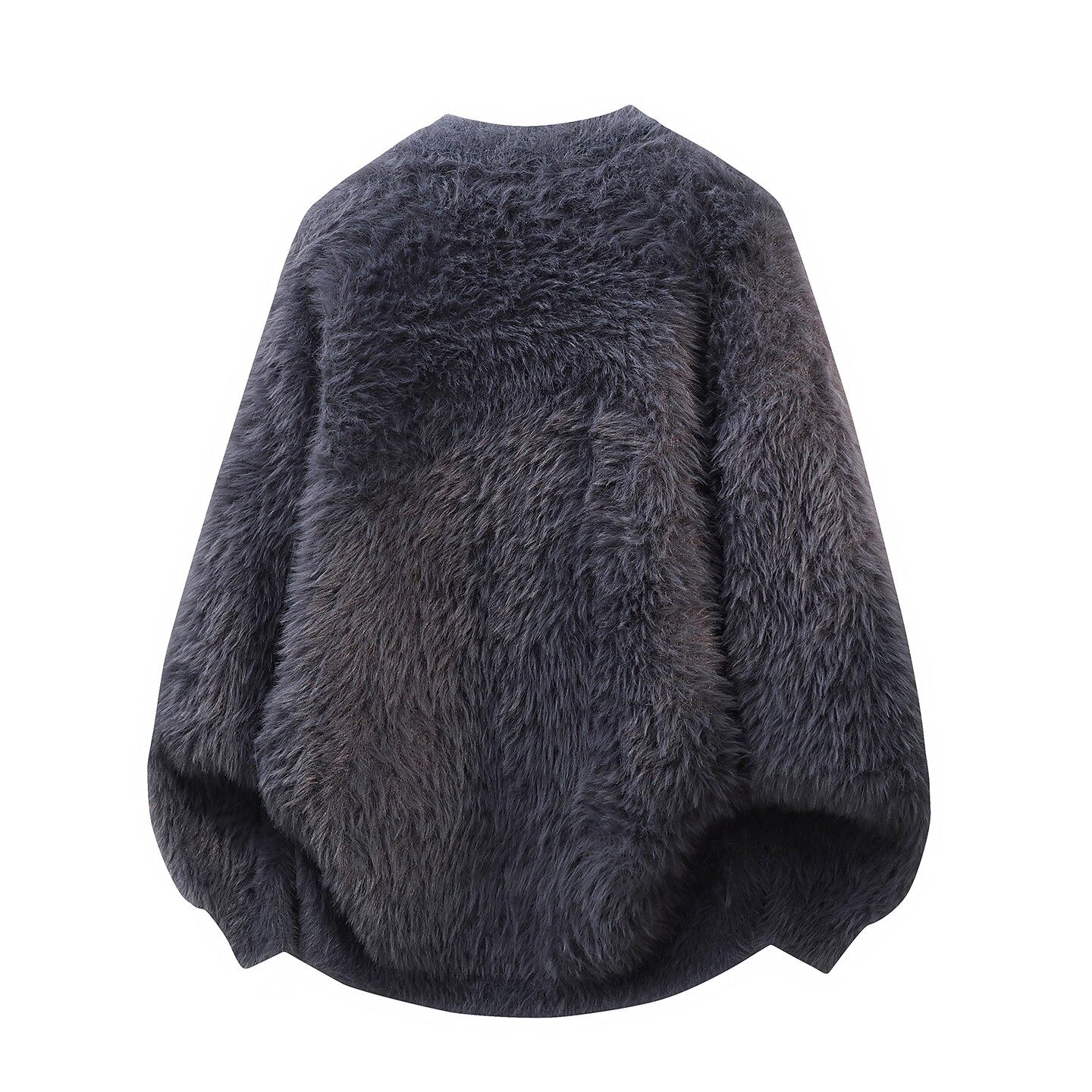 RAPPEYE 百搭学院风宽松针织连帽开衫上衣仿真马海毛毛衣外套女