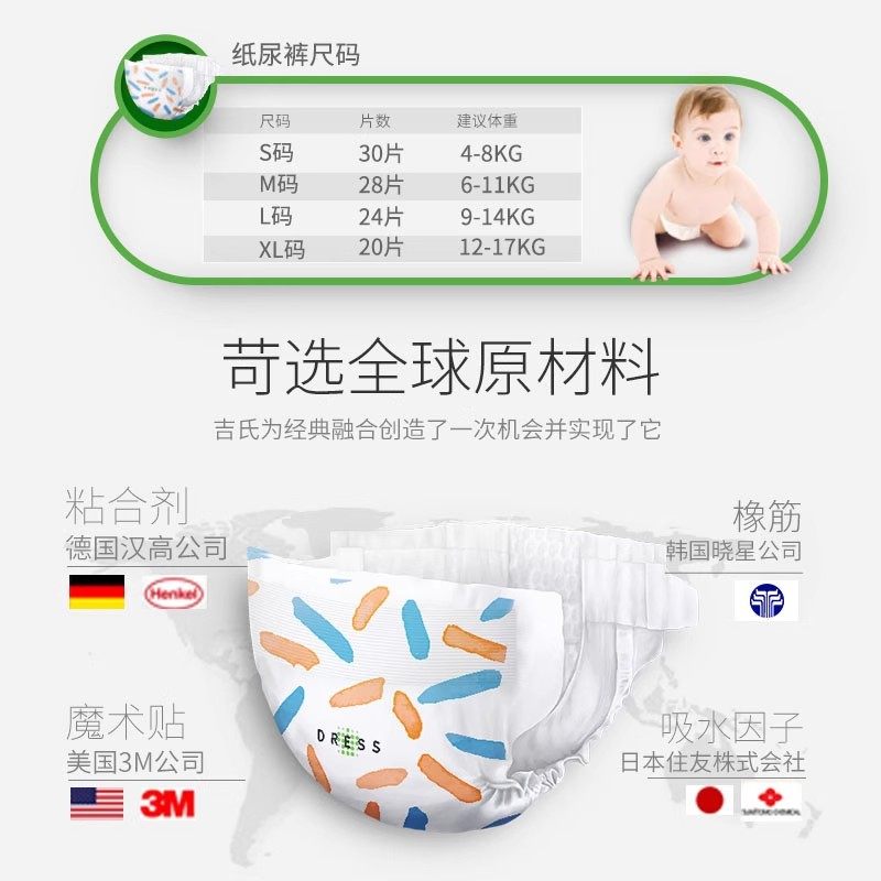 详情领补贴吉氏美术家纸尿裤拉拉裤透气婴儿尿不湿呼吸轻薄柔软