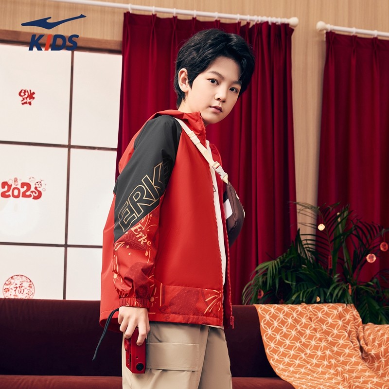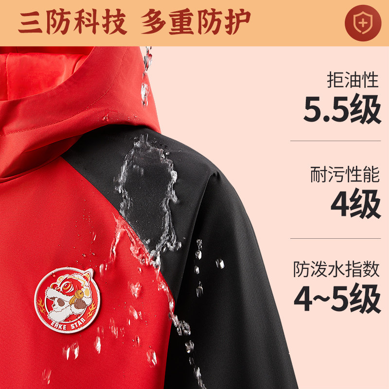 三防科技鸿星尔克童装儿童风衣冬季新年款男童防泼水加厚保暖外套