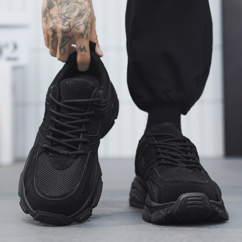 劳保男鞋冬季2025新款防滑厨房工作厚底增高运动潮鞋休闲黑色轻便