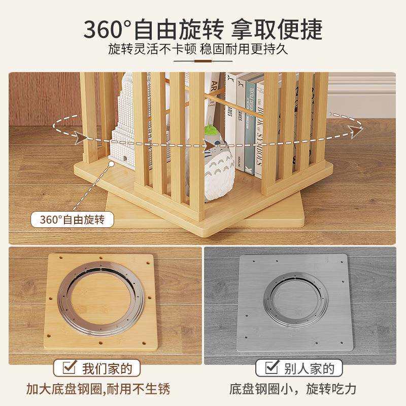 旋转书架桌面实木儿童绘本360度书柜收纳隐形书架学生落地置物架