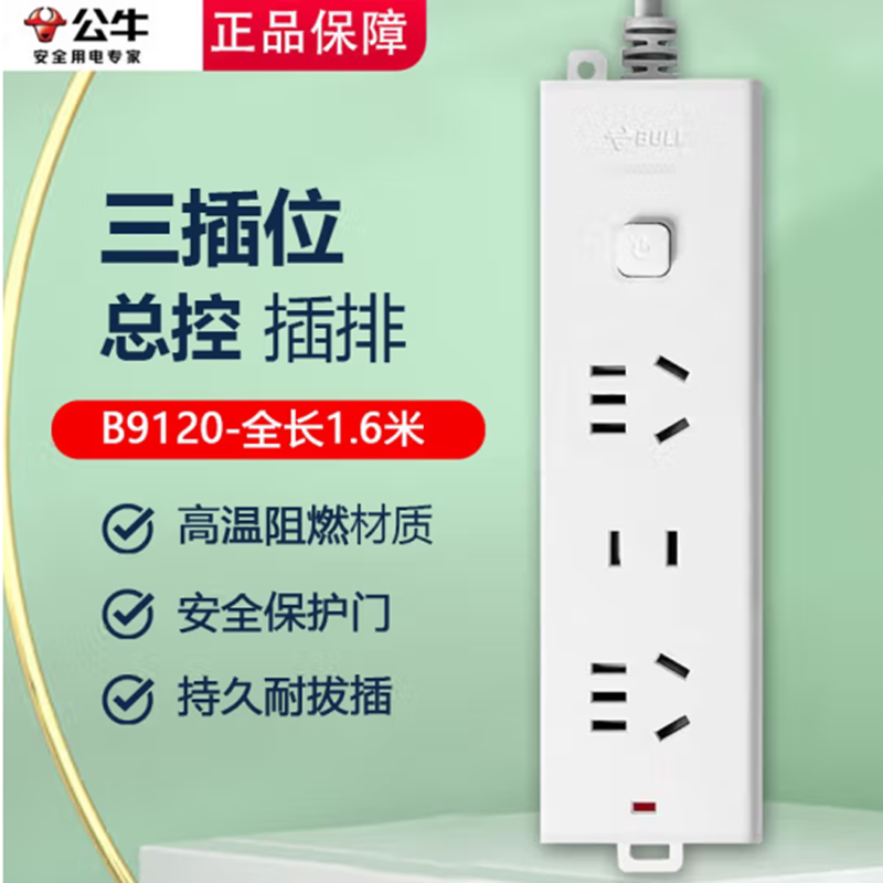 公牛插座排插袋装4米家用条形插排插线板拖线板