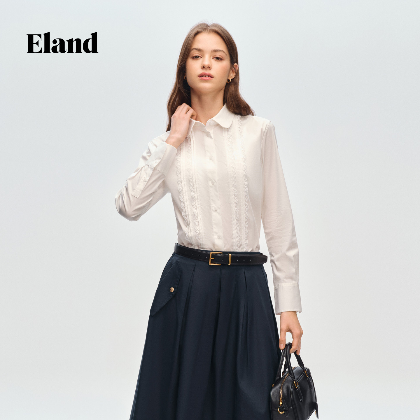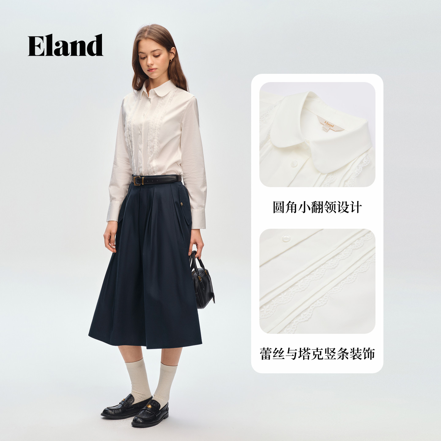 Eland衣恋衬衫女纯色翻领单排扣棉质休闲上衣2026春季新款