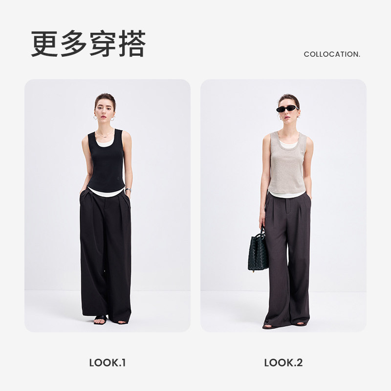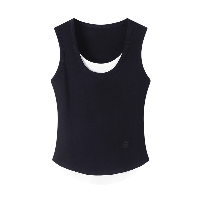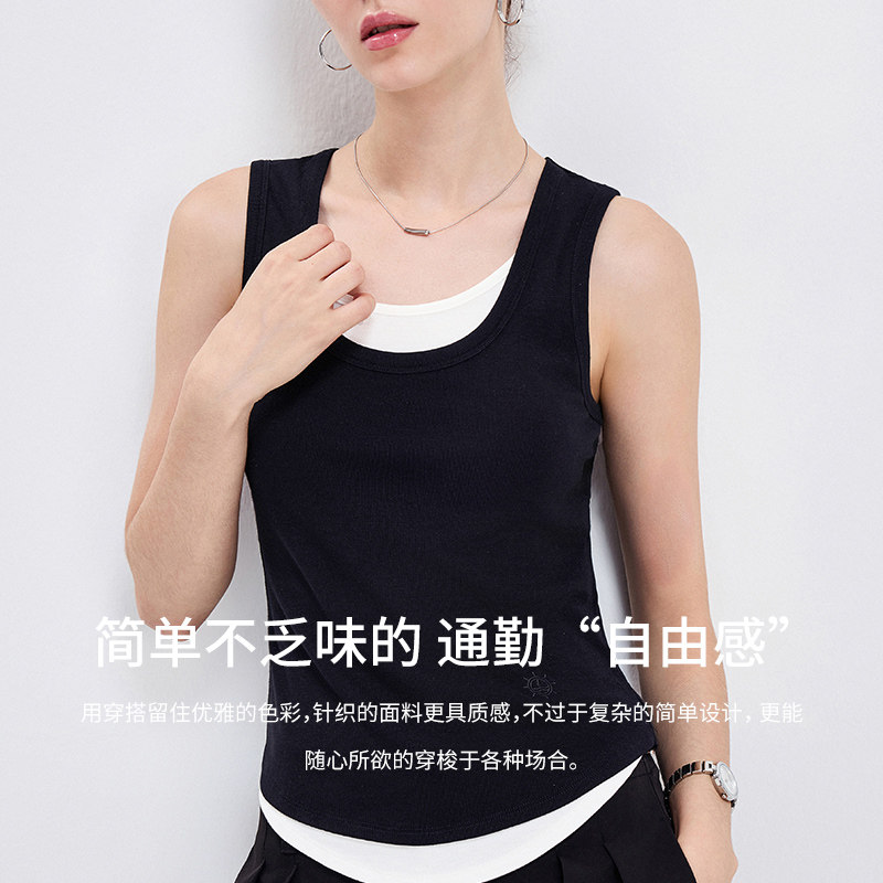 [假两件]Navigare意大利小帆船针织吊带背心女士黑色打底上衣